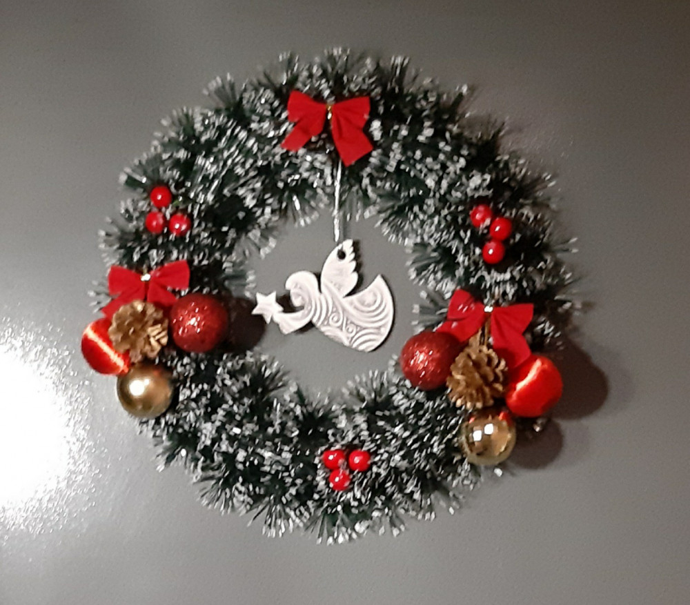 Венок очень классный,плюс цена супер маленькая за такое качество. Аккуратный и качественный. Удобно вешать. Понравились что нет мишуры с задней стороны,не мешать вешать. Можно добавить украшения на свой вкус. В меру пушистый.