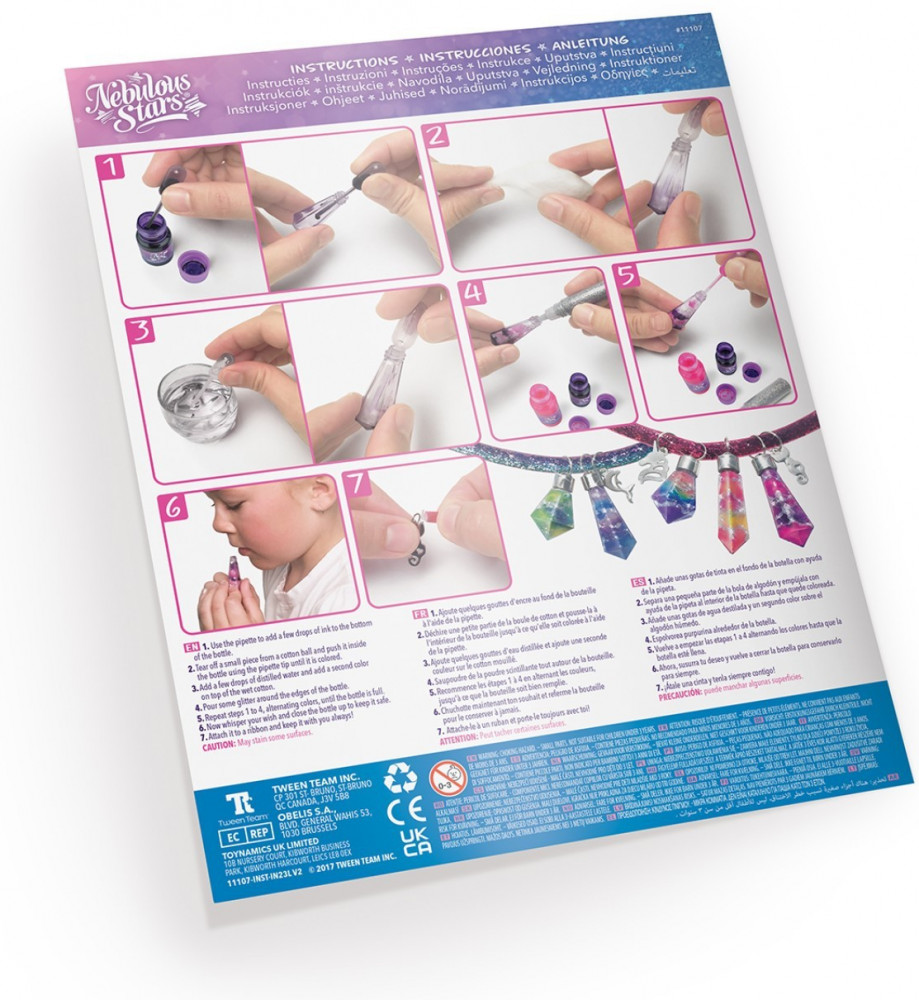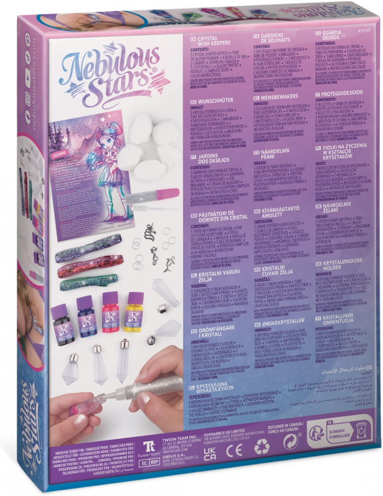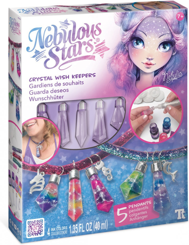 Набор для создания волшебных украшений. Создание галактик в форме магических кристаллов, путём смешивания ингредиентов из набора внутри бутылочек, стилизованных под кристаллы. Можно носить как украшение в качестве подвески или брелока для ключей. К набору прилагается подробная инструкция и буклет с историей звёздочки Nebulia.