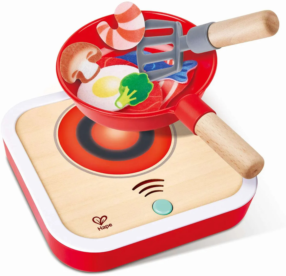 Плита с аксессуарами, световыми и звуковыми эффектами. Включает в себя одну плиту со световыми и шипящими звуковыми эффектами, одну сковороду, одну лопатку и семь кусочков фетровой еды, включая один стейк, один кусочек бекона, одну креветку, одну рыбу, одно яйцо, один гриб и один кусочек брокколи. Нажмите кнопку на плите, чтобы включить мигающий свет и шипящие звуковые эффекты. Световые и звуковые эффекты длятся 10 секунд. Отличный способ заинтересовать детей приготовлением собственной еды. Идеально подходит для развития воображения, а также языковых и социальных навыков. Для детей старше трех лет. |