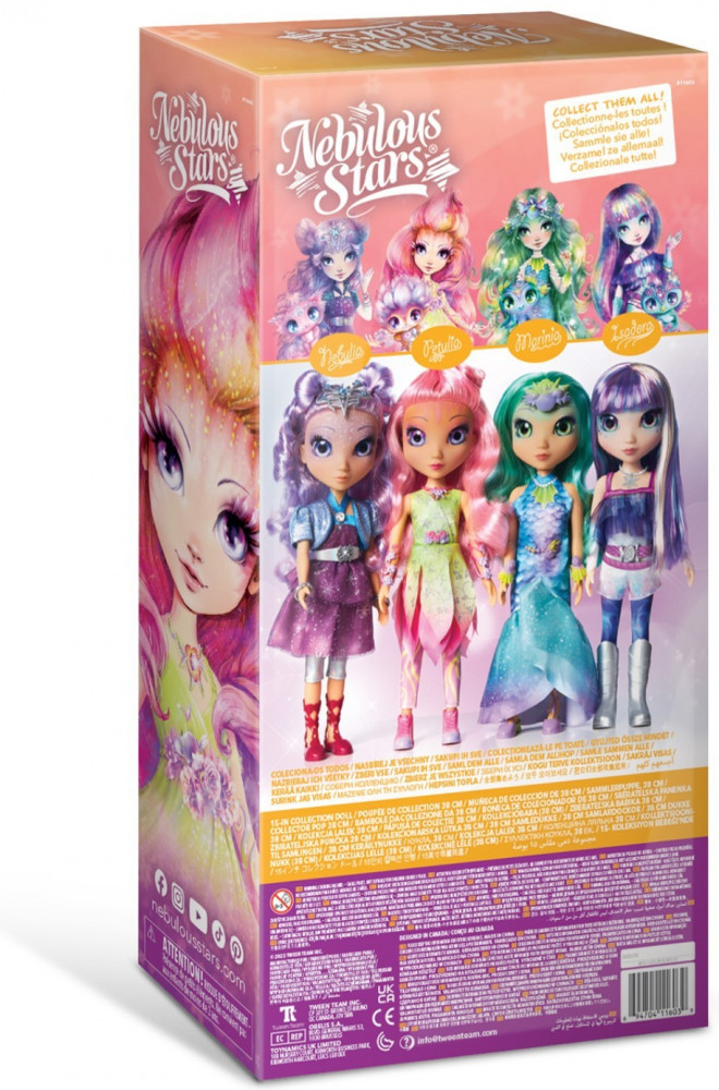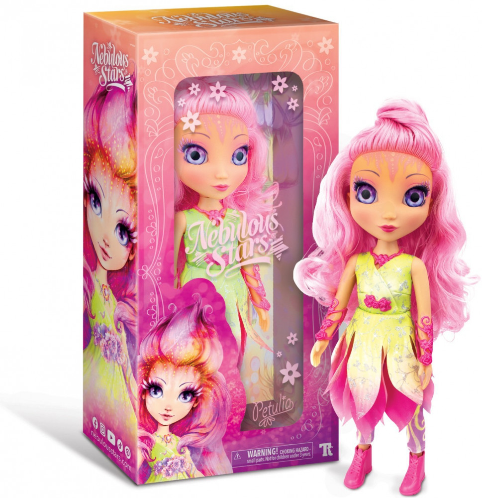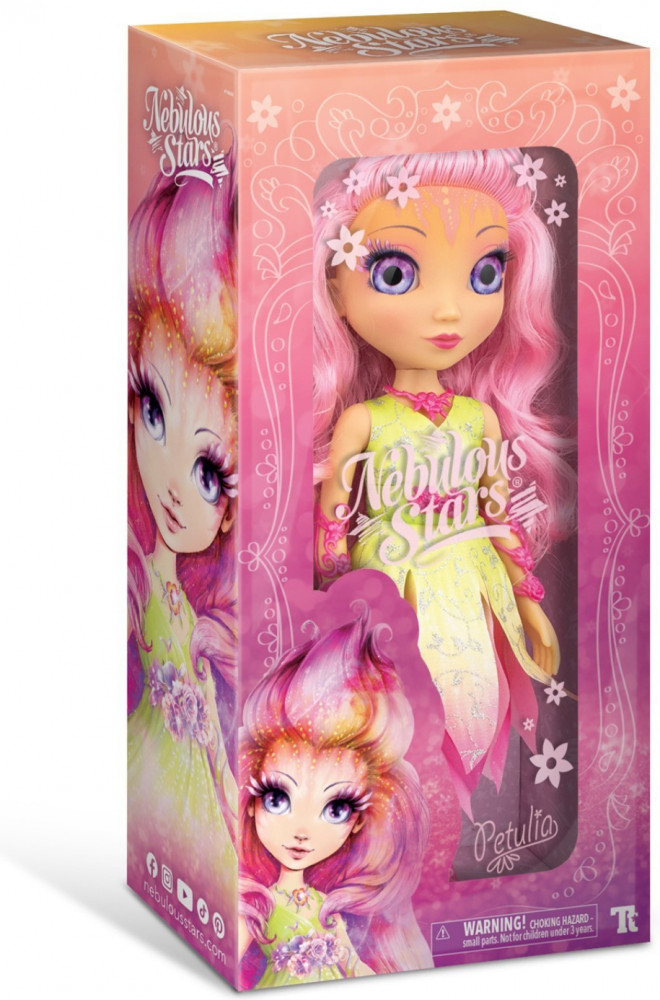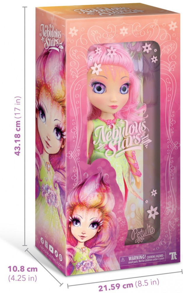 Серия: Petulia Пластиковая кукла Petulia, высотой 38 см, с длинными волосами. Одета в атласное платье с принтом и блестящей оборкой, головной убор и туфли. В комплект входит полная история звёздочки и её любимой питомицы. |