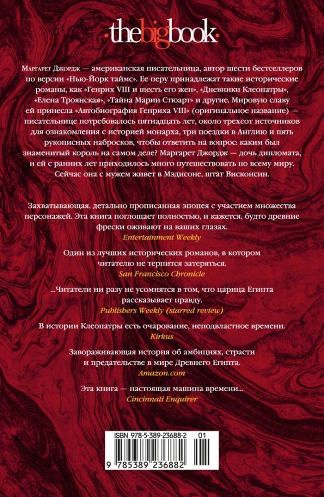 💳 Оплатить за товар можно при получении 🇰🇿 Есть бесплатная доставка по Казахстану от 1 дня 🎁 Копите бонусы с каждой покупки Серия: The Big Book «...Красота этой женщины была не тою, что зовется несравненною и поражает с первого взгляда...» — писал о ней великий историк Плутарх. Но тот, кто хотя бы раз в жизни видел царицу эллинистического Египта Клеопатру, не мог забыть ее до конца своих дней. Редкое обаяние сочеталось в ней с властностью, ораторское искусство — с волшебным голосом; она была прекрасно образована и свободно говорила на многих языках. |