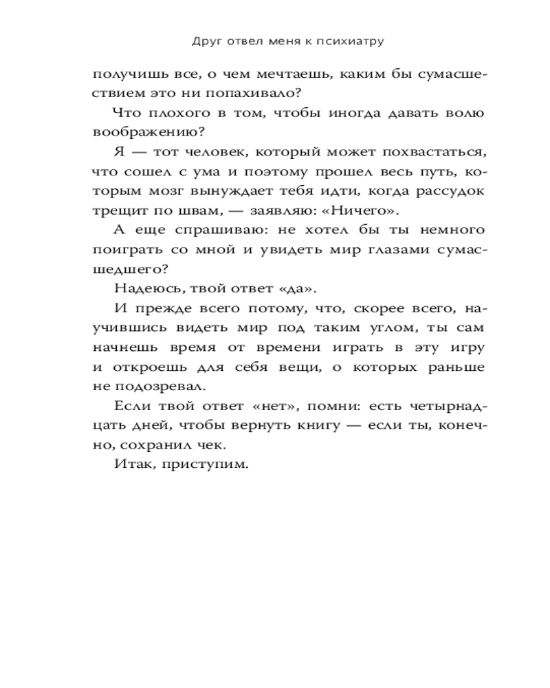 💳 Оплатить за товар можно при получении 🇰🇿 Есть бесплатная доставка по Казахстану от 1 дня 🎁 Копите бонусы с каждой покупки Серия: Больше чем жизнь «4 июня 2017 года я зашел в приемный покой психиатрического отделения больницы в Пуэрта-де-Йерро. Причина обращения? «Пациент мужского пола тридцати девяти лет обратился за экстренной помощью из-за бредовых идей». |