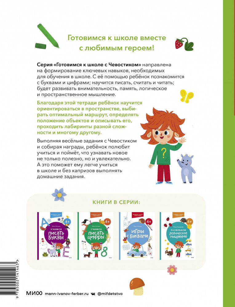 Развиваем пространственное мышление. Готовимся к школе с Чевостикомзадания увлекательные детям нравится мотивирует заниматься В данный момент этот товар отсутствует в продаже. Возможно, у нас найдется аналогичный или похожий товар здесь. Серия: Чевостик Новая серия развивающих тетрадей «Готовимся к школе с Чевостиком». |