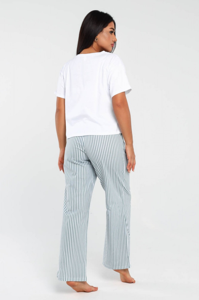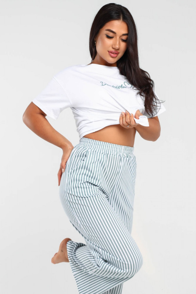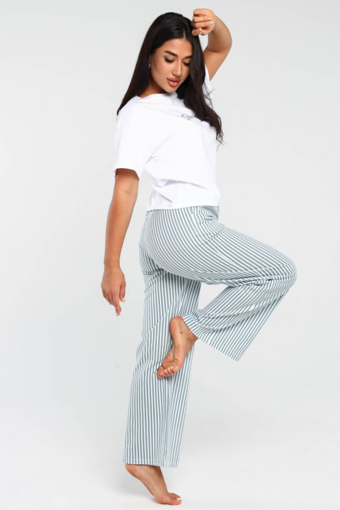 Отличная пижама, материал качественный, приятный к телу. Брюки можно использовать, как дома, так и на летнюю прогулку.