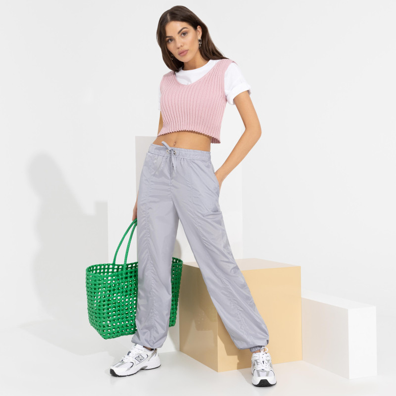 Плащёвка тонкая, подходит больше для лета. Крой штанин более широкий, чем на фото. Всё-таки надо бы моделям принимать более естественные позы для демонстрации вещей.