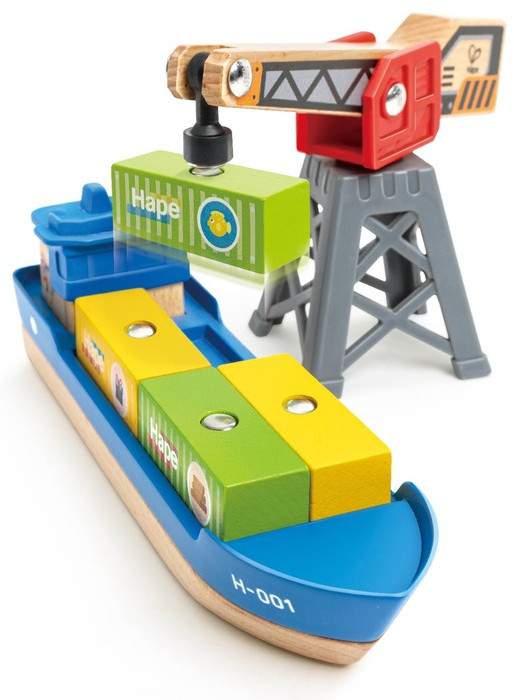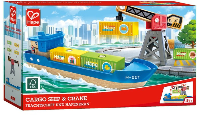 Hape Набор игровой «Грузовой корабль и подъемный кран»-20% +432