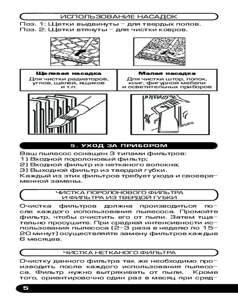 В комплект входят две дополнительные насадки для чистки мебели или узких труднодоступных мест.
