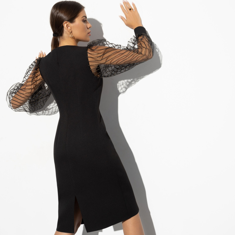 красивое платье, отлично село по фигуре, на рост 160, 86-72-94 как раз 44 размер, длина по колено, чуть ниже, выглядит нарядно и очень достойно.