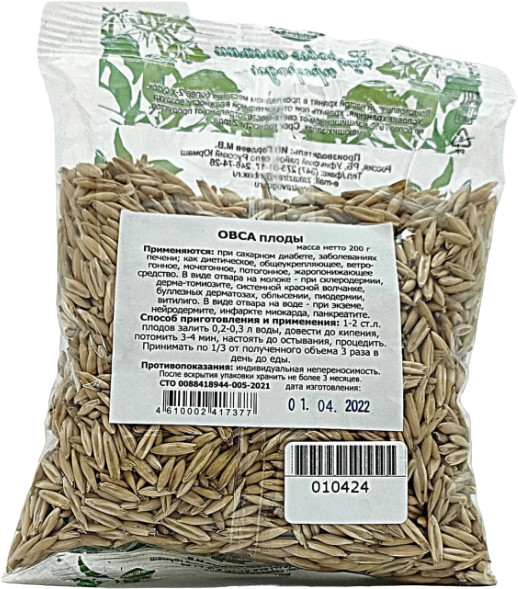 Способ приготовления и применение: настой: 100 г плодов овса (1 стакан) настаивать в 1 л кипятка до охлаждения, процедить, принимать по 0,5 стакана 3-4 раза в день. Отвар на молоке: 2 стакана промытых плодов залить 5-6 стакана кипящего молока, проварить на медленном огне 2 мин, настоять 30 мин, процедить, принимать по 1 стакану 3 раза в день в течение 3 месяцев, затем сделать перерыв на 1 месяц. Отвар на воде: 1 стакан промытых плодов измельчить, варить на медленном огне 30 мин, процедить, пить по 0,2 стакана 4-5 раз в день.