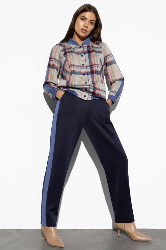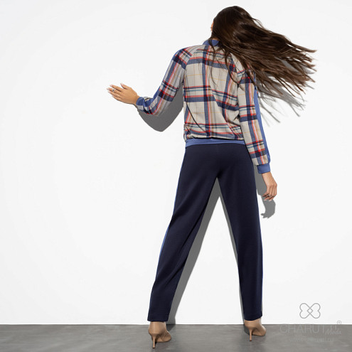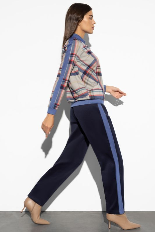 Это спортивный костюм. Ни с какими туфлями его не наденешь, так как штаны - это спортивка, типа советских трико, но плотнее. Штаны чистая синтетика. Бомбер отличается качеством ткани, получше