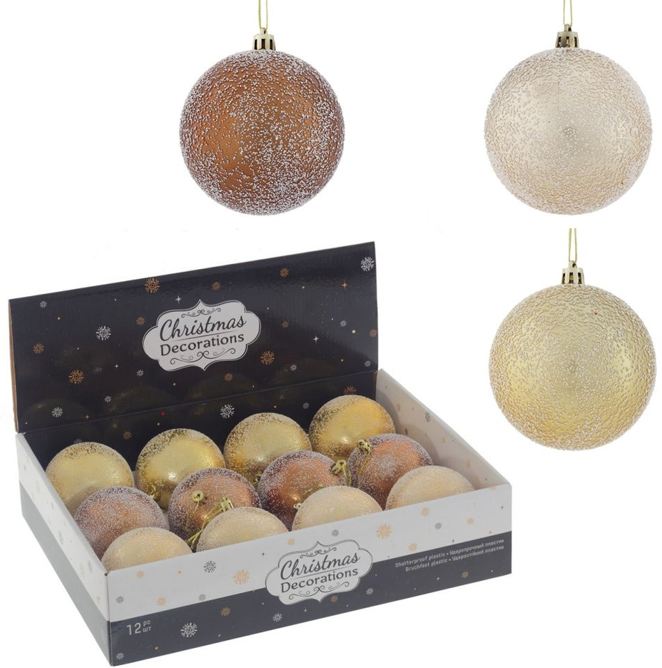 Серия: Новогодний декор «Новогоднее золото» Набор из 12-ти елочных шаров, выполнен в единой цветовой гамме. В составе набора — пластиковые шары разной фактуры — глянцевые и матовые. Прекрасно смотрятся в убранстве новогодней ели. Поставляются в прозрачной пластиковой упаковке. |