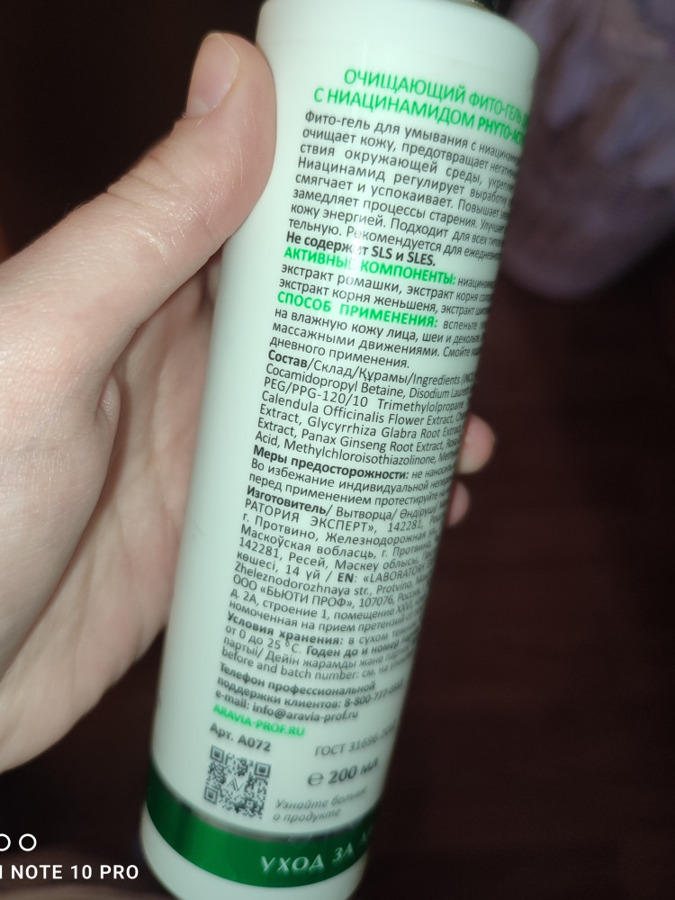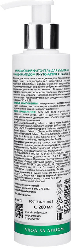 Aravia Фито-гель для умывания с ниацинамидом+135 хорошо очищает хорошо пенится мягкий чувствительной коже выравнивает тон сушит