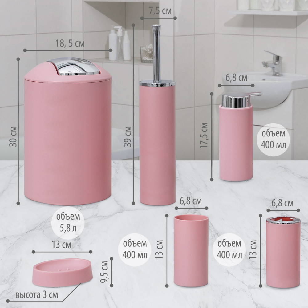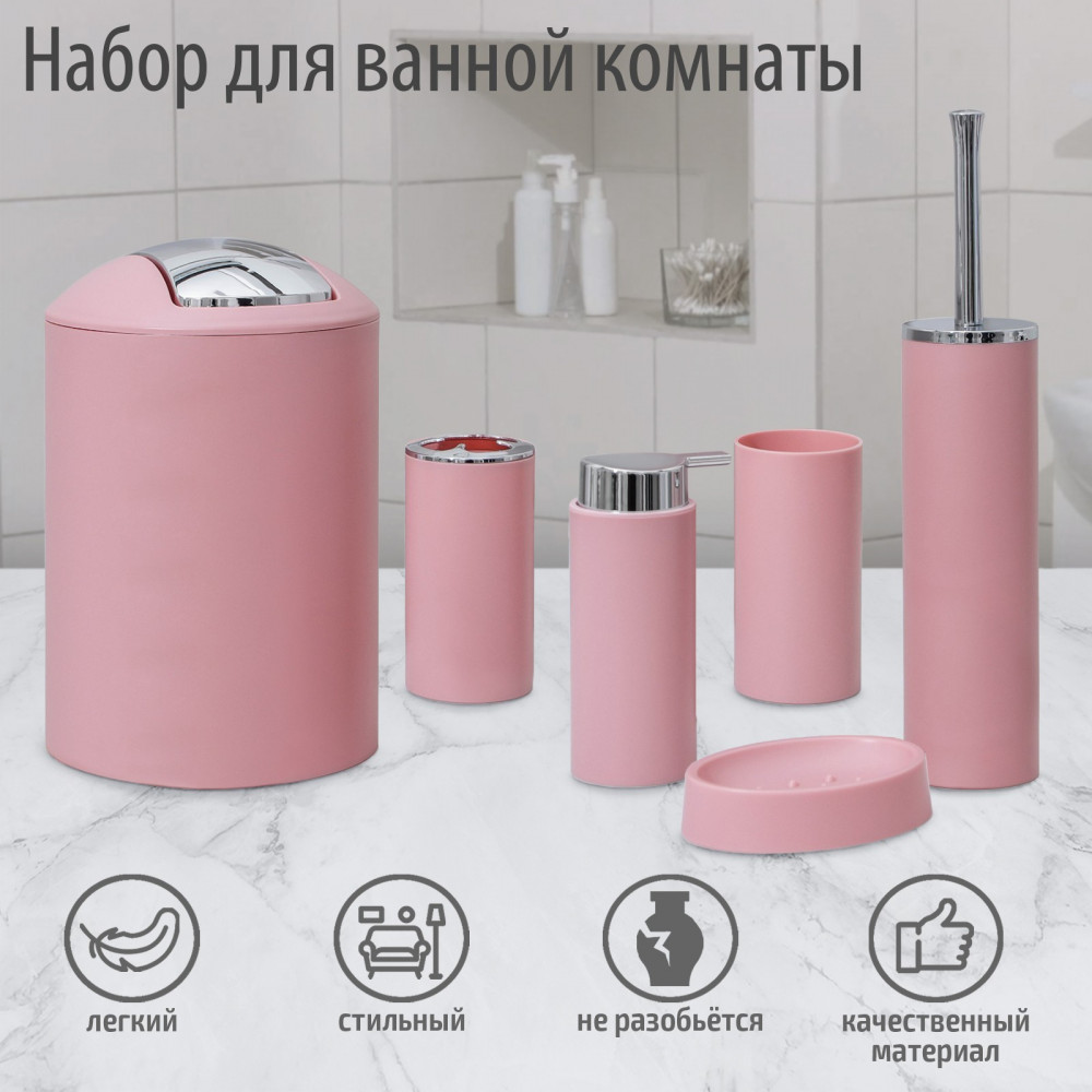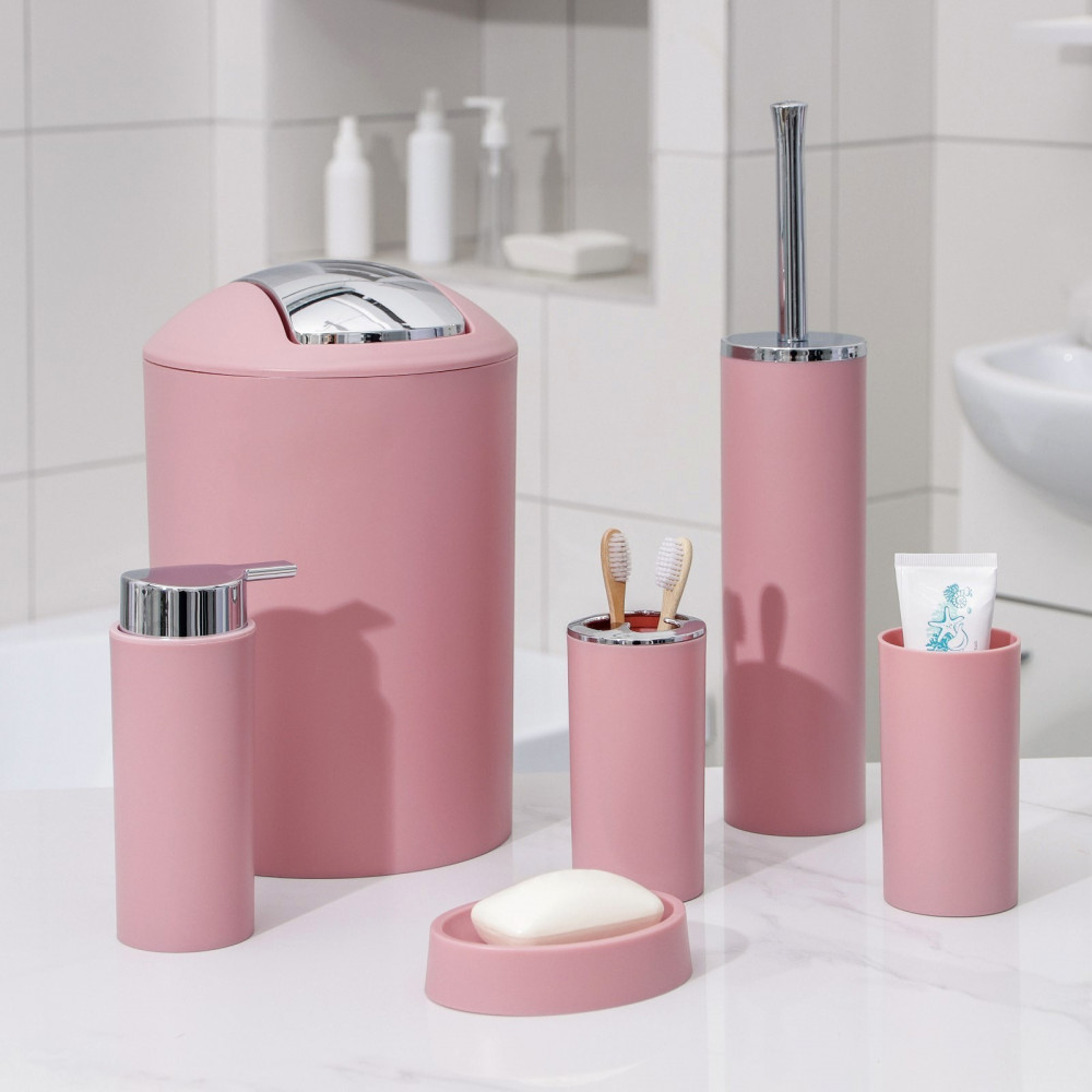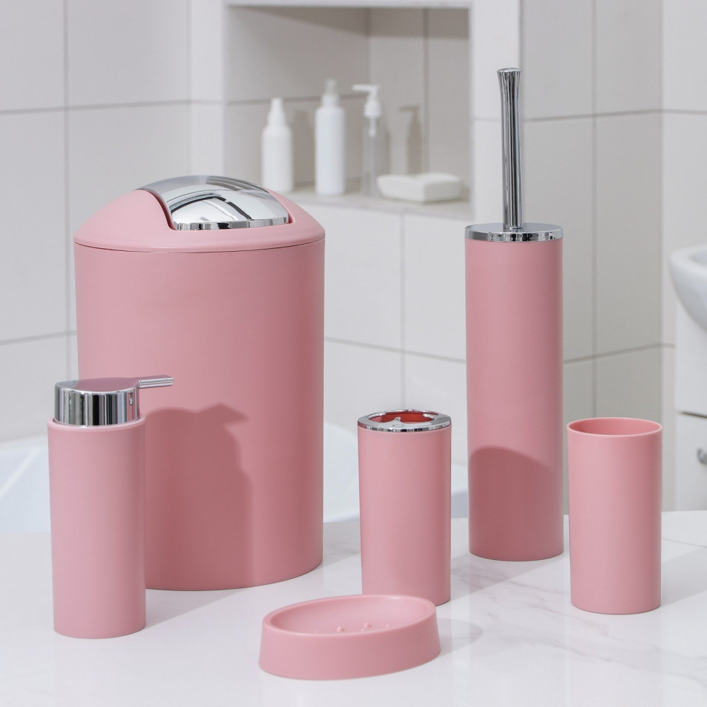 Набор аксессуаров организует пространство и станет стильным украшением Вашей ванной комнаты. За счет сдержанного дизайна данный набор в ванную подойдет к любому дизайну ванной комнаты. Набор состоит из 6 предметов: дозатор, мыльница, 2 стакана, ёршик, ведро.