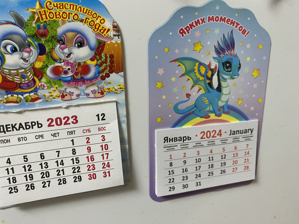 Отрывной , небольшой, на магните , бумажный календарик. Удобно делать пометки . В прошлом году подарили . В этот раз специально нашла подобный . Очень удобный для меня.