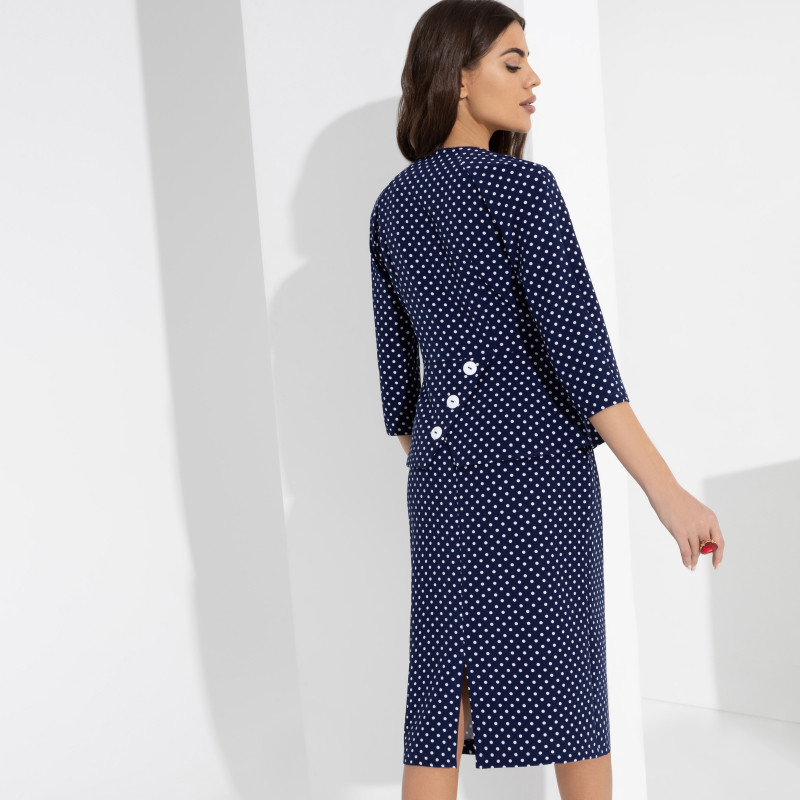 Классный пошив - на мою фигуру сел хорошо, очень удачная баска, скрывает лишнее))) Ткань не мнётся и не требует усиленного глажения. Удобный для офисной работы рукав, ну и вообще нарядный. Юбка без подклада, но ткань такая, что не прилипает.