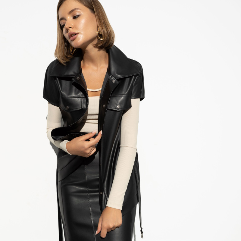 Брала специально для комплектации в юбкой из кожзама. У моей юбки материал намного мягче....надеялась, что и жилет будет такой же, но не угадала. Все таки оставила...буду носить.