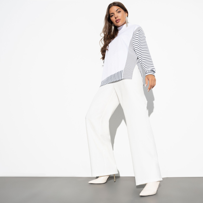 Ношу 54 размер, оказалась большевата, покрой такой свободный, не смотря на то , белая, за счет такой ткани будет легко ее стирать и она не изменится.Стильная и цена для нее привлекательная.Рекомендую!