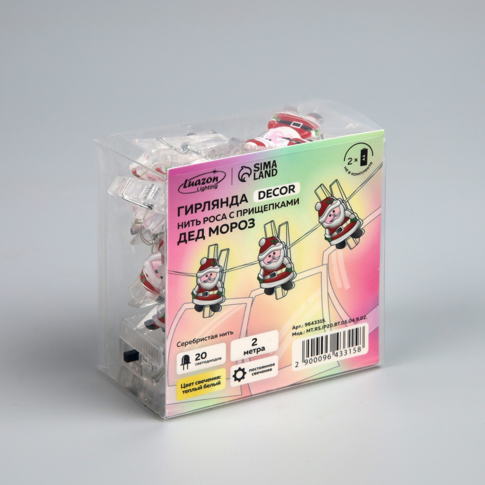 Luazon Lighting Гирлянда-нить «Прищепки с Дедом Морозом»В данный момент этот товар отсутствует в продаже. Возможно, у нас найдется аналогичный или похожий товар здесь. Серия: Decor Среди огромного выбора электрических световых гирлянд наиболее популярными являются гирлянды в виде нити. Простая конструкция идеально подходит для украшения елок и деревьев, фасадов зданий и любых интерьеров. Светодиодные гирлянды бывают различных вариантов: от одноцветных до многоцветных. Современные технологии позволяют светиться одному светодиоду двумя и даже тремя различными цветами попеременно! |