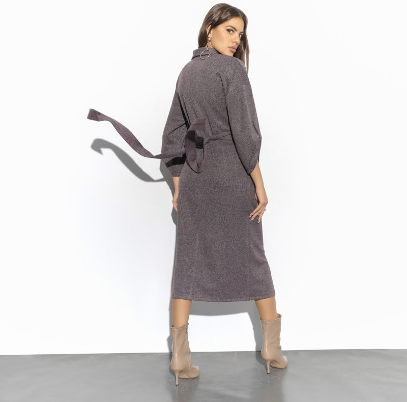 заказала 50 размер, сел не очень красиво. ткань в мелкий рубчик. очень длинный пояс.