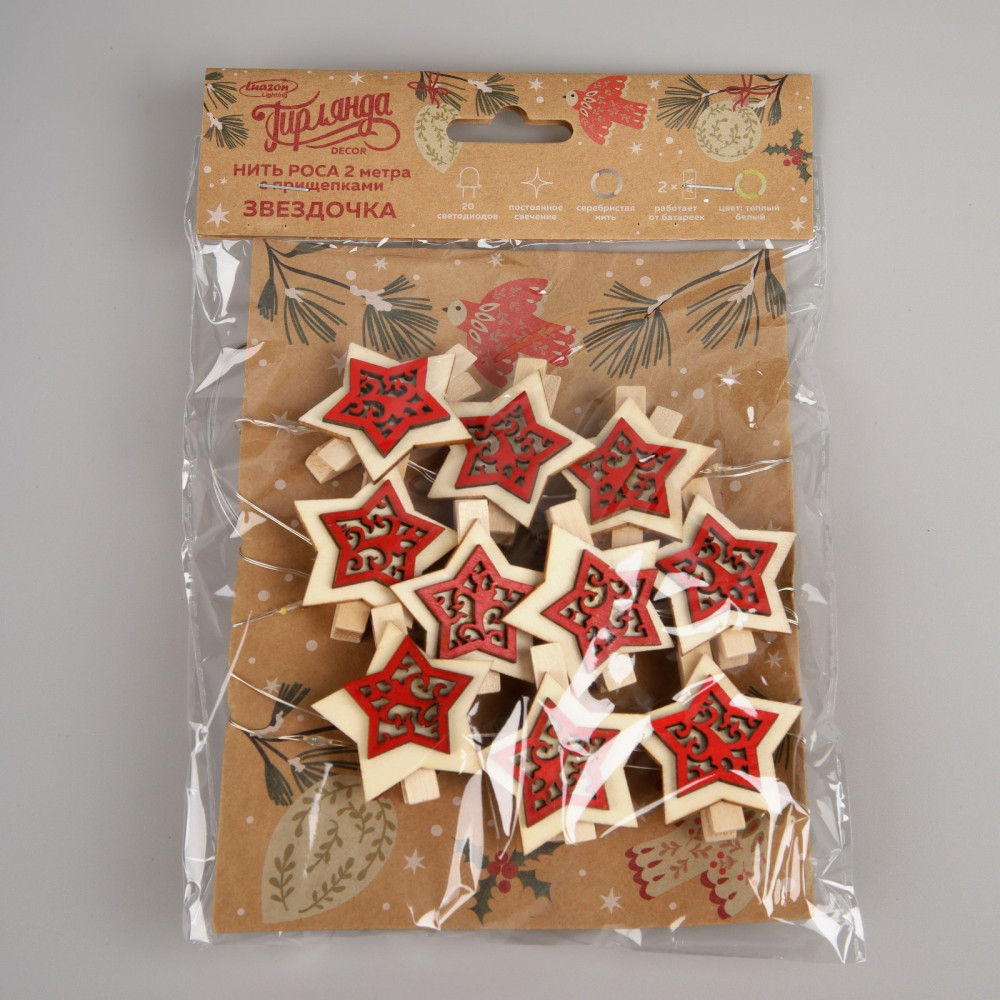 Luazon Lighting Гирлянда-нить с насадками «Прищепки-звёздочки»-25% +35