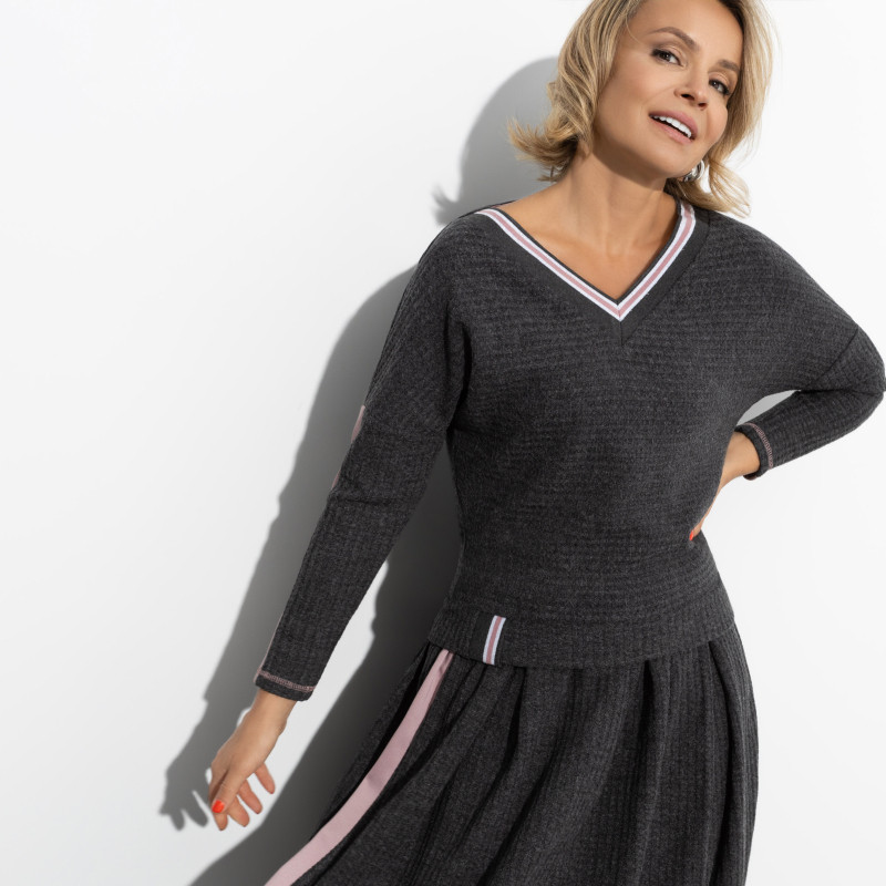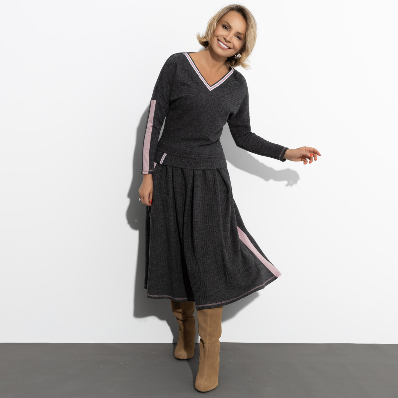 Заказывали 44 размер. Кофта очень маленькая - рукава узкие, а юбка - большая на этот размер и очень полнит за счет складок.