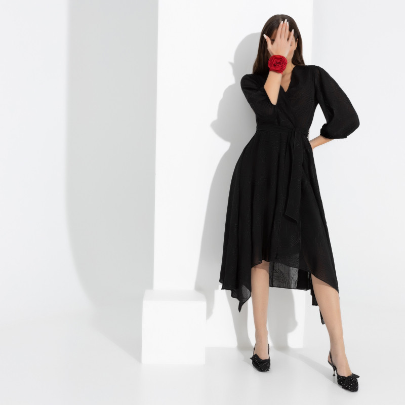 Платье смотрится отлично. Ткань приятная к телу. Сшито аккуратно. Очень довольна покупкой.