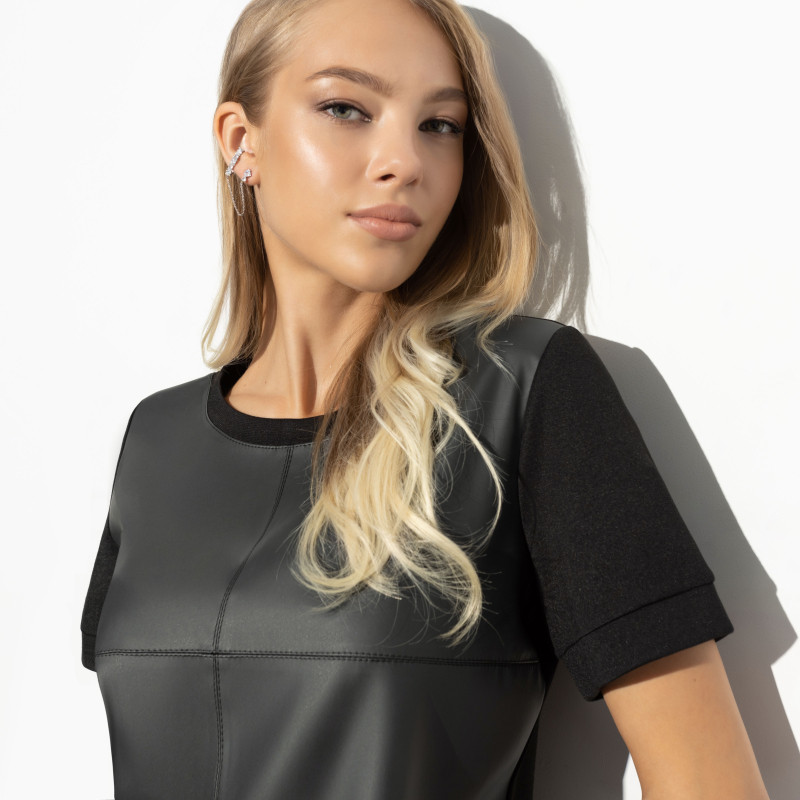 65% полиэстер, 30% вискоза, 5% стрейч (трикотаж «милано», «экокожа»)