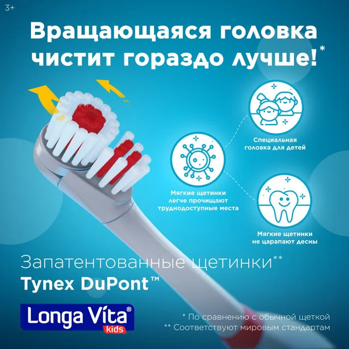 Детская электрическая зубная щетка «Фиксики» предназначена для детей от трех лет и станет отличным помощником в процессе самостоятельной чистки зубов. Дизайн щетки выполнен в ярких цветах, что делает процесс чистки зубов веселым и увлекательным. Головка щетки имеет мультиколорный дизайн и изготовлена из пластика, она совершает возвратно-вращательные движения, что обеспечивает бережное и эффективное очищение зубов. Щетка не является вибрационной, что делает ее более безопасной для использования детьми. Оснащена мягкой щетиной из синтетического материала, что позволяет бережно очищать зубы, не травмируя десны. В комплекте две насадки и две заменяемые батарейки.