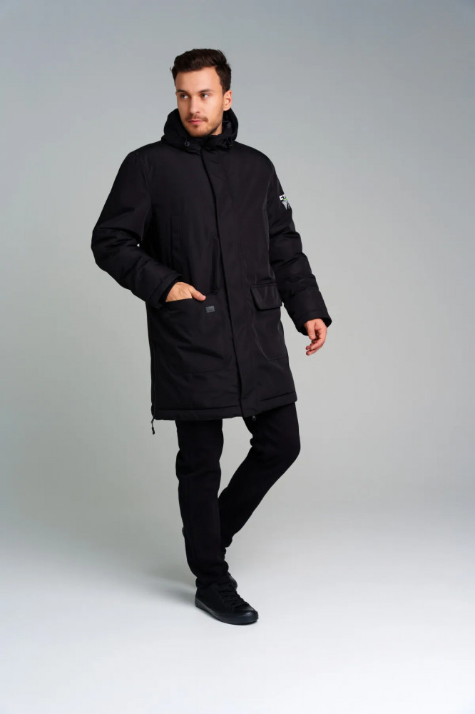 Пальто зимнее из мембранной ткани. Линия Nord — высокая степень теплозащиты. Температурный режим до −15С. Материал верха с ветрозащитным и водоотталкивающим покрытием. Внутренняя и внешняя ветрозащитные планки. Два боковых и накладных кармана на липучке. Внутренний карман. Подкладка — флис. Несъемный капюшон регулируемый резинкой со стопперами. Эластичный манжет по низу рукава.