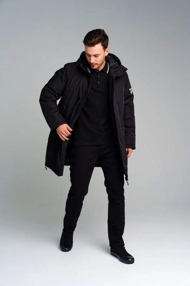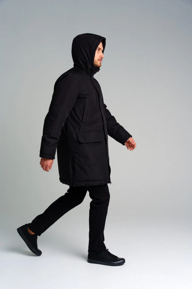 Пальто зимнее из мембранной ткани. Линия Nord — высокая степень теплозащиты. Температурный режим до −15С. Материал верха с ветрозащитным и водоотталкивающим покрытием. Внутренняя и внешняя ветрозащитные планки. Два боковых и накладных кармана на липучке. Внутренний карман. Подкладка — флис. Несъемный капюшон регулируемый резинкой со стопперами. Эластичный манжет по низу рукава.