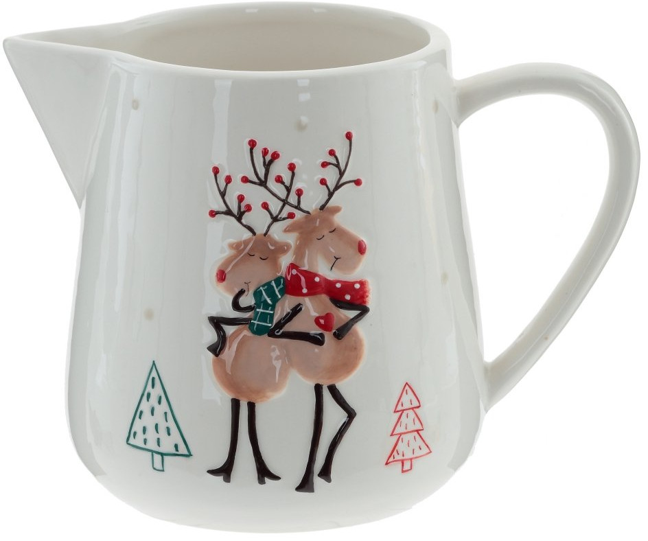 Керамическая кувшин с новогодним декором в виде влюбленной пары оленей - это не только украшение праздничного стола, но и замечательный подарок для близких и друзей.