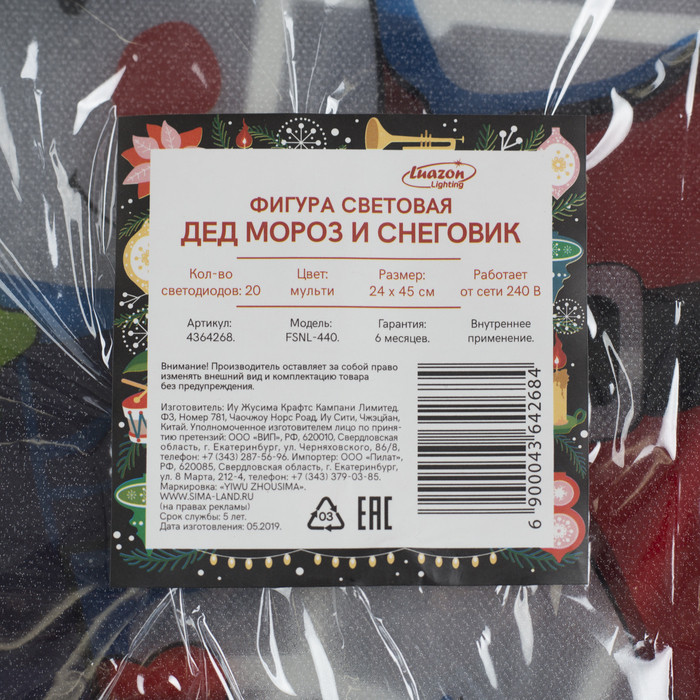 Luazon Lighting Светодиодная фигура «Дед Мороз и снеговик»-25%