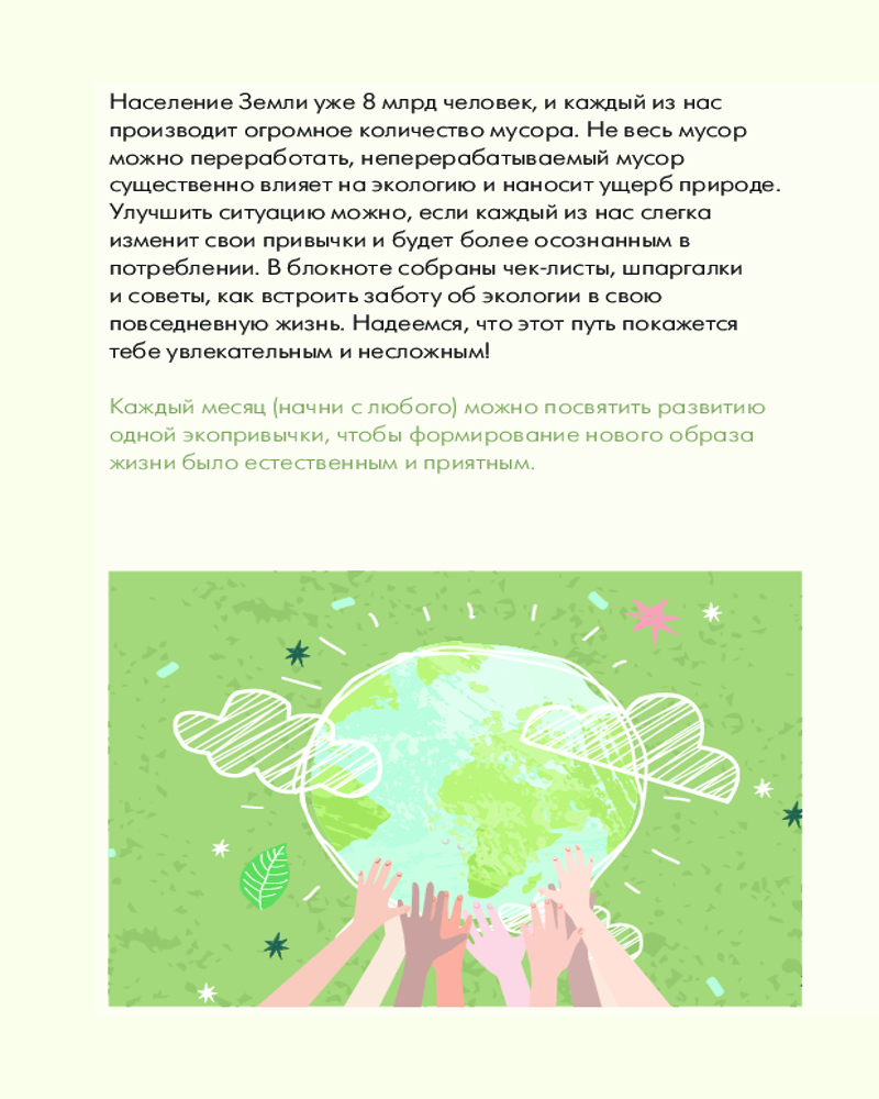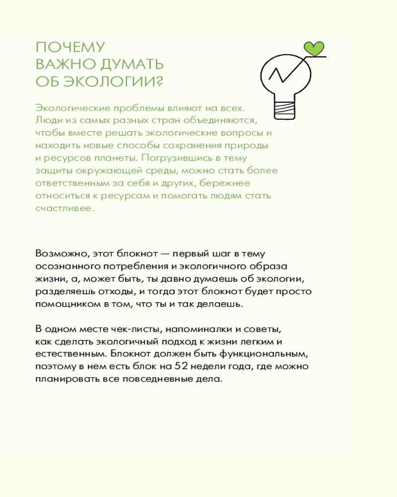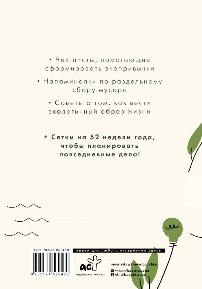 💳 Оплатить за товар можно при получении 🇰🇿 Есть бесплатная доставка по Казахстану от 1 дня 🎁 Копите бонусы с каждой покупки Серия: Мой любимый ежедневник Если ты давно думаешь об экологии и будущем планеты, хочешь начать разделять отходы и сократить потребление, готов разобраться во всех тонкостях экологичного образа жизни, этот блокнот точно для тебя. |