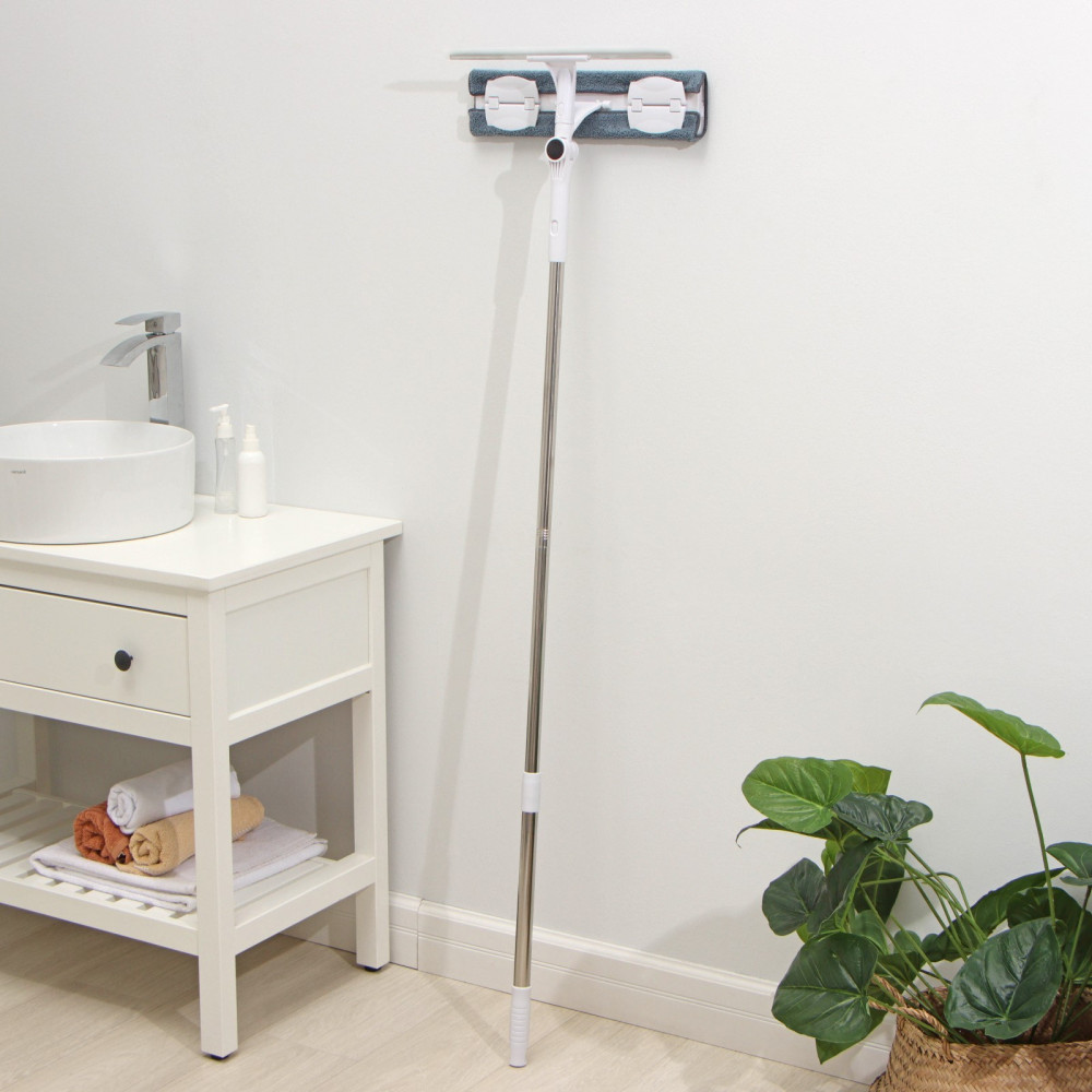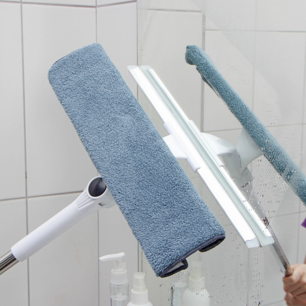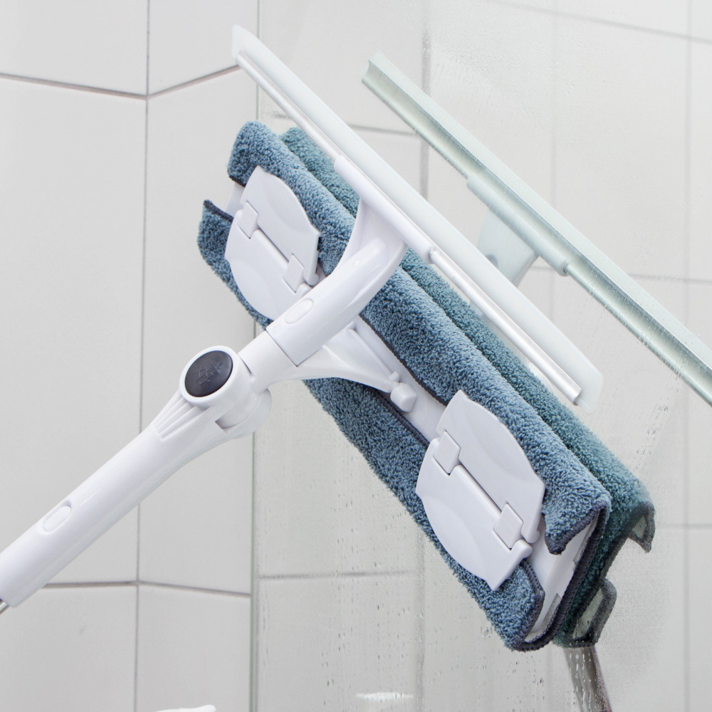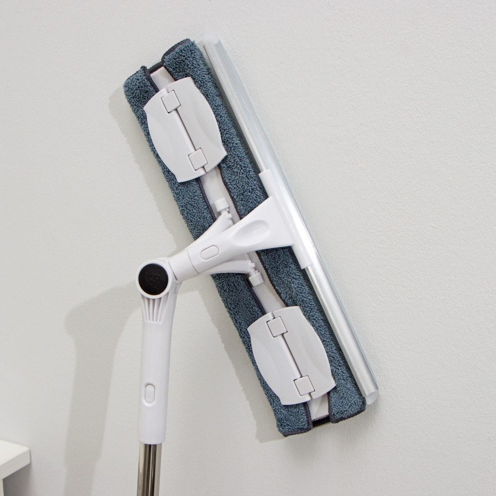 Классная окномойка, с ней мытьё окон стало занимать гораздо меньше времени. В комплекте прилагается тряпочка и водосгон. Водосгон можно прикрепить к окномойке как вместе с основной моющей насадкой, так и как отдельную насадку. Основная моющая насадка может поворачиваться и менять угол. Длина окномойки хорошая, удобно мыть высокие окна.