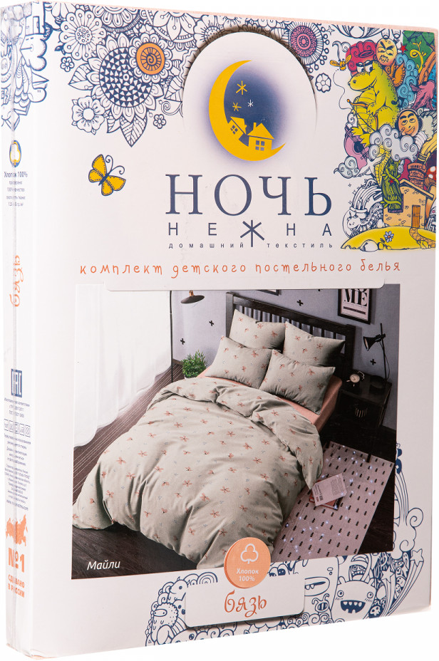 Детское постельное белье ТМ «Ночь Нежна» выпускаются из качественной бязи плотностью 125 гр. Бязь это хлопчатобумажная ткань, при производстве которой применяется самое простое переплетение полотняное. Поверхность материи получается одинаковой с обеих сторон, ровной и матовой. Экологичная, гипоаллергенная, износостойкая ткань отлично подходит для изготовления постельных принадлежностей. |