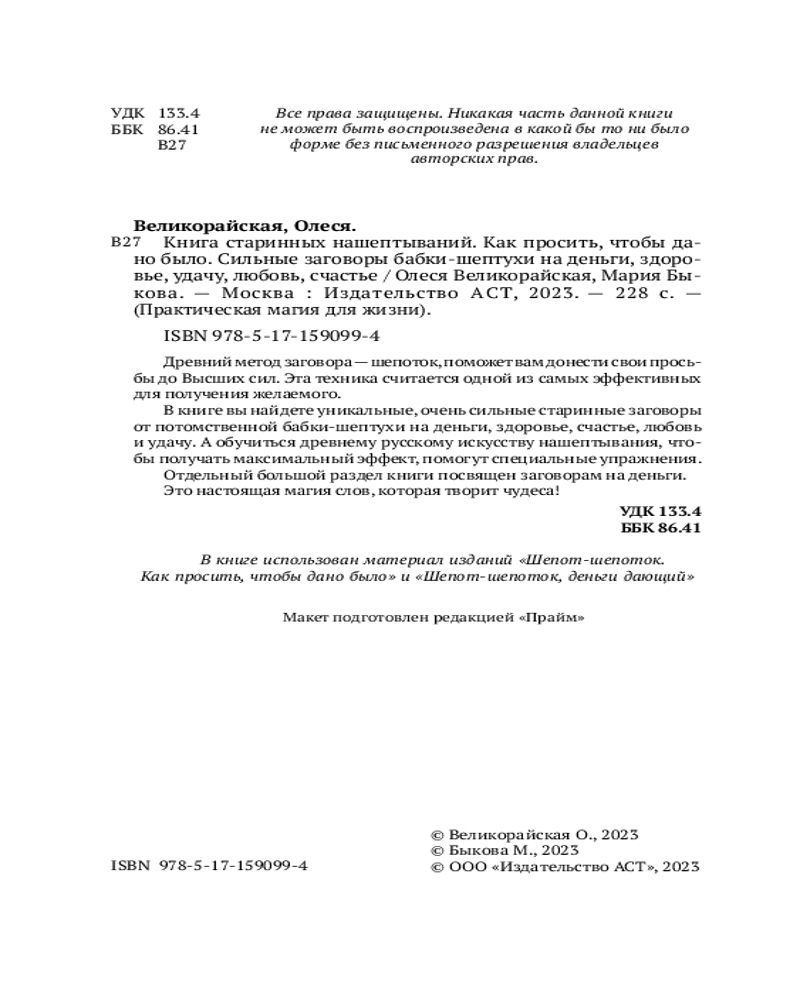 Книга старинных нашептываний. Как просить, чтобы дано было. Сильные заговоры бабки-шептухи на деньги, здоровье, удачу, любовь, счастьеОлеся Великорайская, Мария Быкова +74 полезно практикам интересное содержание малый вес небольшой объём качество печати тонкая бумага