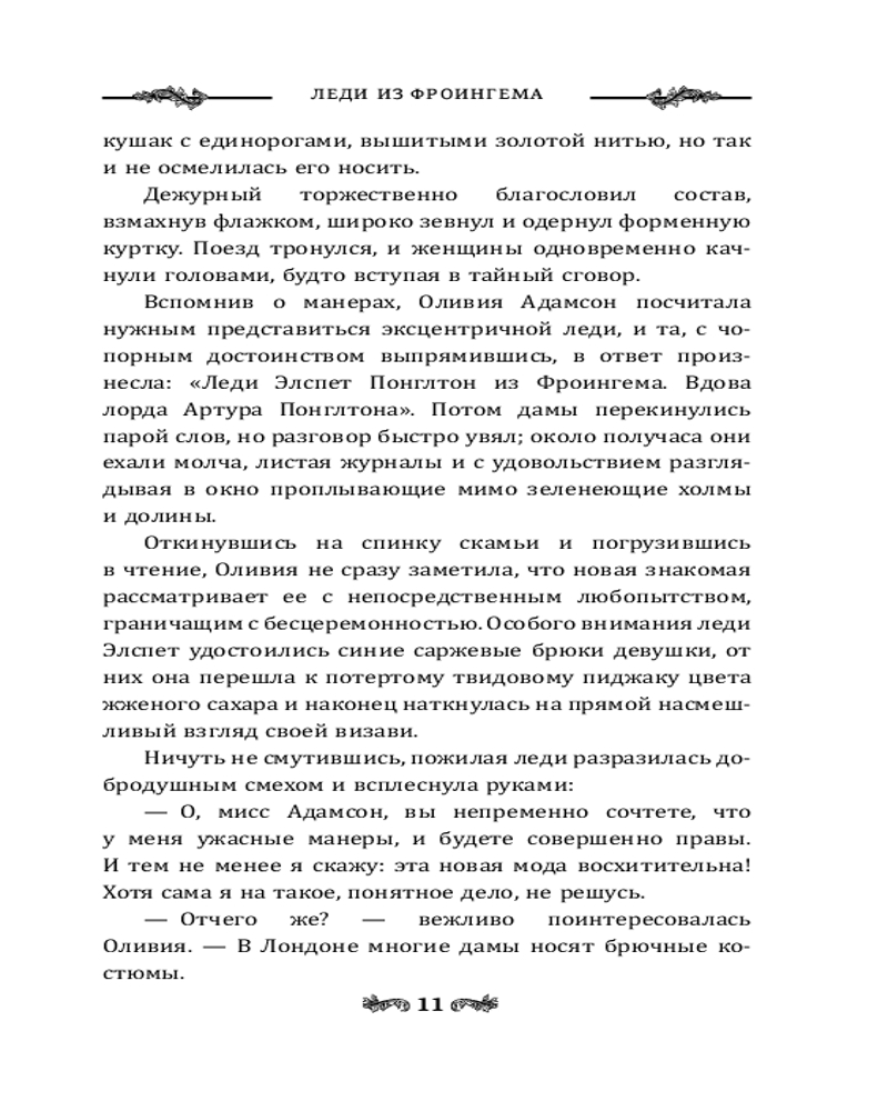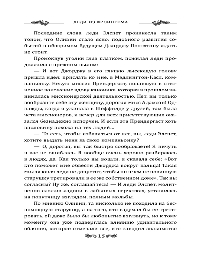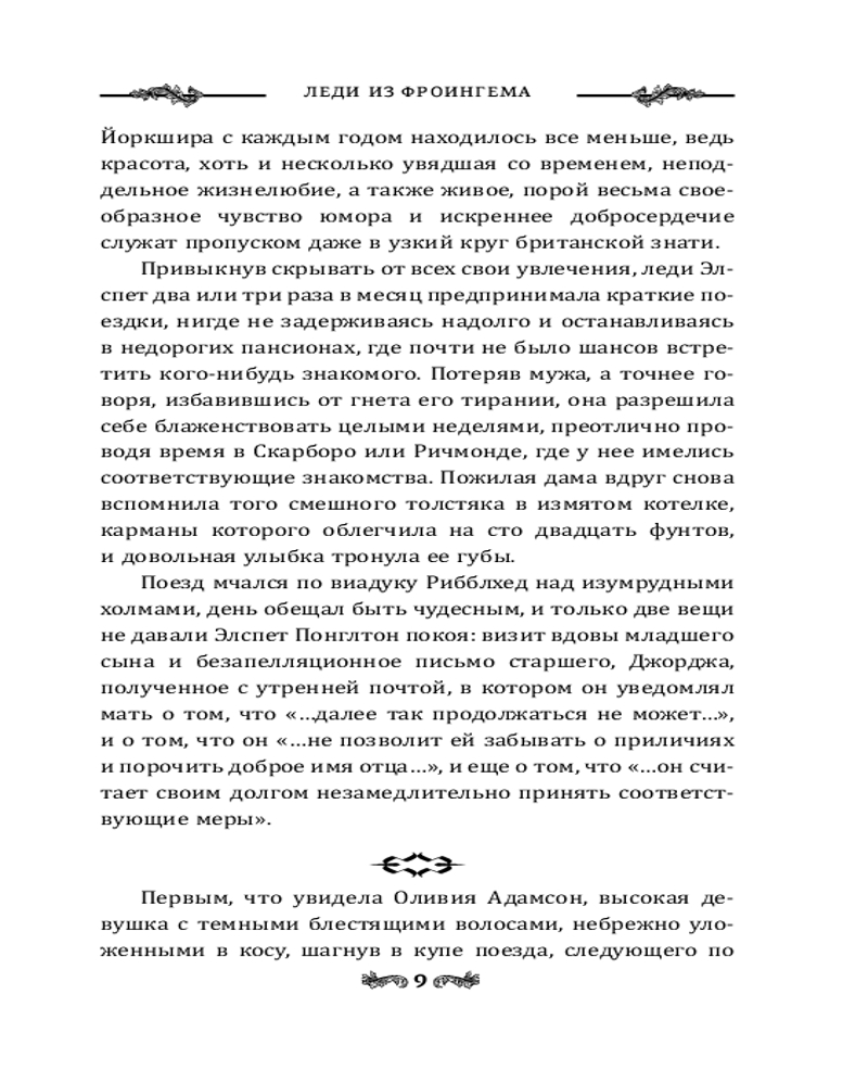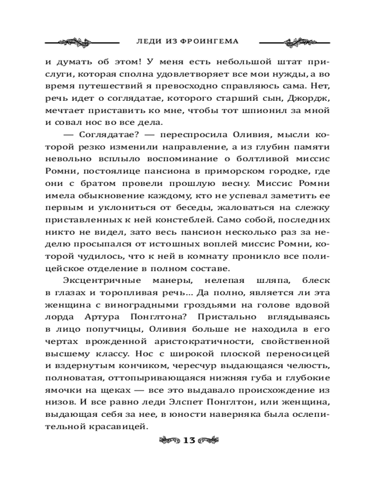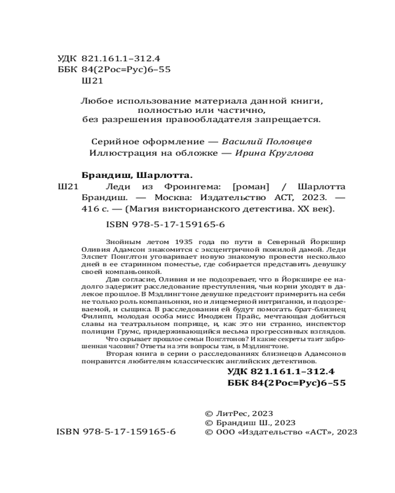 Леди из ФроингемаВ данный момент этот товар отсутствует в продаже. Возможно, у нас найдется аналогичный или похожий товар здесь. Серия: Магия викторианского детектива Знойным летом 1935 года по пути в Северный Йоркшир Оливия Адамсон знакомится с эксцентричной пожилой дамой. Леди Элспет Понглтон уговаривает новую знакомую провести несколько дней в ее старинном поместье, где собирается представить девушку своей компаньонкой. |