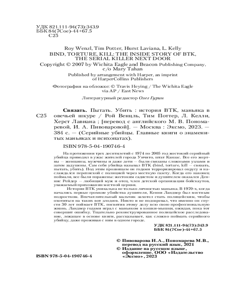 | Связать. Пытать. Убить. История BTK, маньяка в овечьей шкуре Рой Венцль +124 (бонуса)