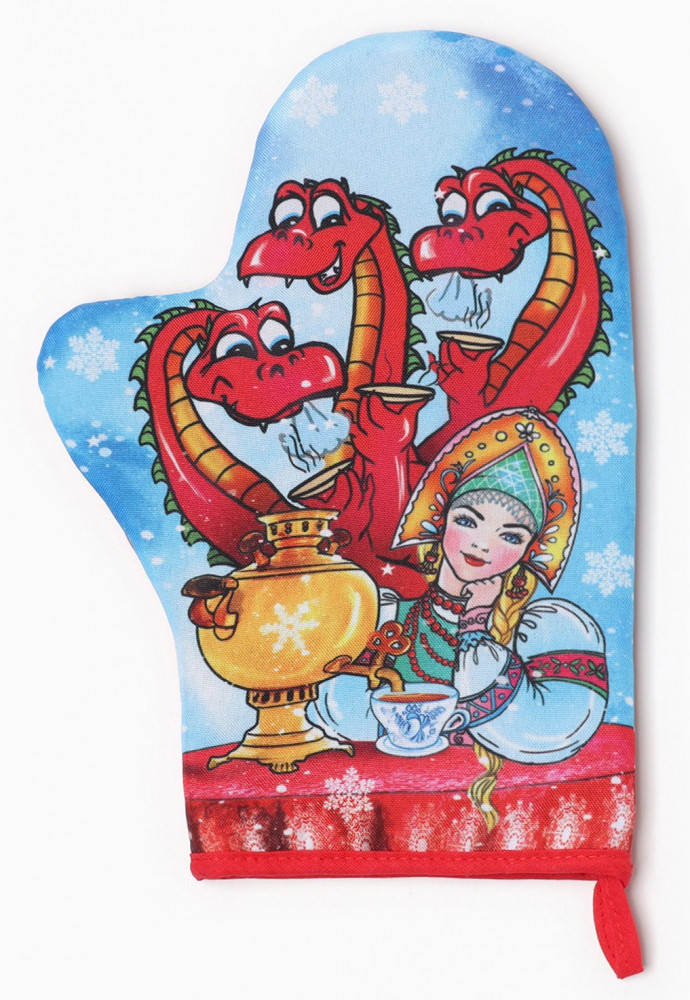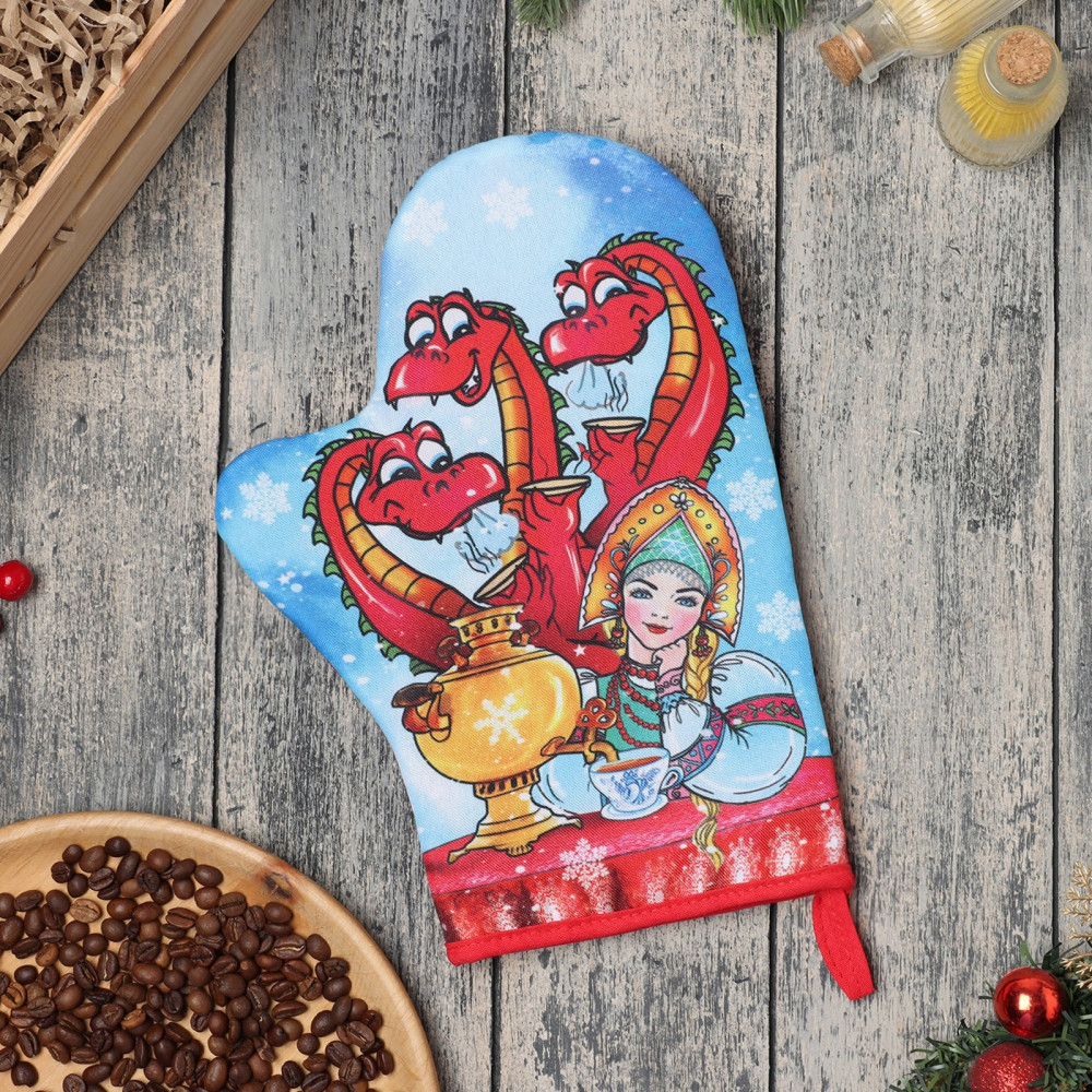 Варежка-прихватка «Чаепитие с драконом» — незаменимый аксессуар на любой кухне, который сделает процесс приготовления комфортным и безопасным: защитит нежные руки хозяюшки от ожогов, не «убежит» из поля зрения благодаря удобной петельке, станет настоящим украшением помещения.
