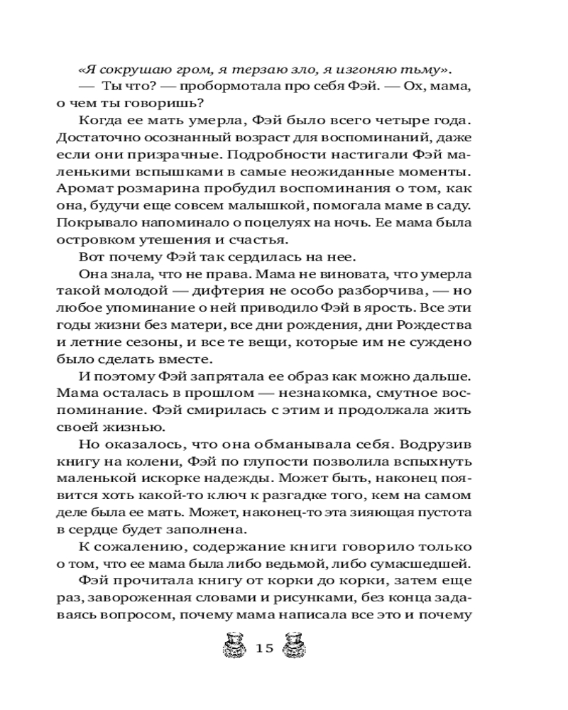 Серия: Ведьмы Вудвилла. Магия Марка Стэя Фэй Брайт всегда чувствовала, что отличается от других людей. Случайно обнаружив дневник своей покойной мамы, она наконец поняла причину этого чувства. Помимо рецепта пудинга с вареньем среди записей обнаружились заклинания, описания ритуалов, зарисовки странных существ и рун... Это была колдовская книга. Её мать была ведьмой. И Фэй унаследовала её дар. |