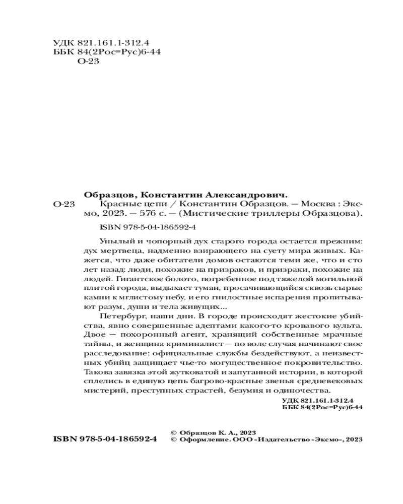 Серия: Мистические триллеры Образцова Поистине ошеломляющий триллер. Унылый и чопорный дух старого города остается прежним: дух мертвеца, надменно взирающего на суету мира живых. Кажется, что даже обитатели домов те же, что и сто лет назад: люди, похожие на призраков, и призраки, похожие на людей. Гигантское болото, погребенное под тяжелой могильной плитой города, выдыхает туман, просачивающийся сквозь сырые камни к мглистому небу, и его гнилостные испарения пропитывают разум, души и тела живущих... |