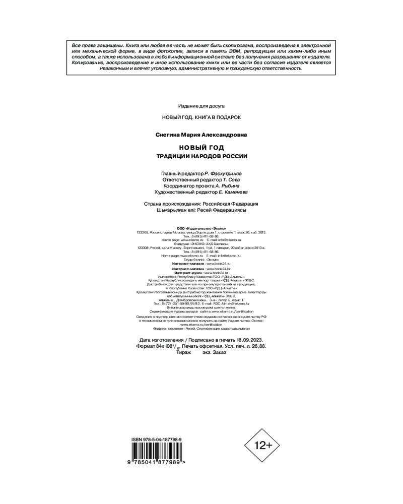 💳 Оплатить за товар можно при получении 🇰🇿 Есть бесплатная доставка по Казахстану от 1 дня 🎁 Копите бонусы с каждой покупки Серия: Новый год. Книга в подарок Как Новый год у мусульман связан с зороастризмом и почему Старый Новый Год празднуют только славяне? Какого цвета одежда у башкирских Деда Мороза и Снегурочки и как приготовить традиционные чувашские лепешки в виде уточек и коров? Почти все народы мира имеют свои праздники и обряды, связанные с наступлением нового года, однако время и формат празднования может сильно разниться. |