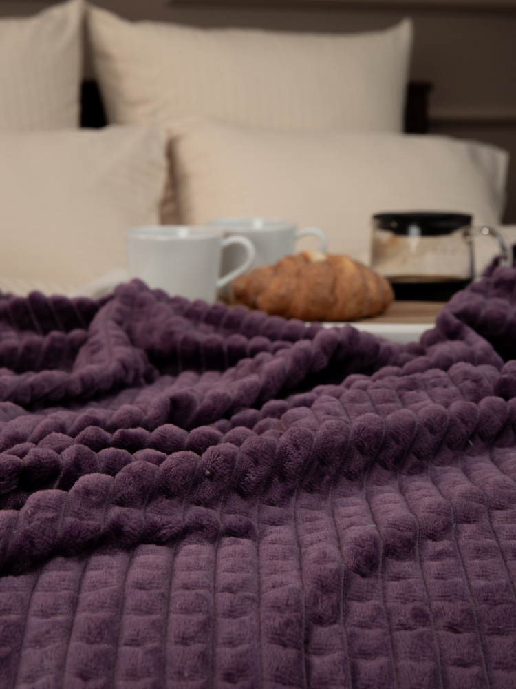 Отличный плед. Быстро сохнет, не электризуется. Даже кошка успела его пожамкать), но затяжек нет! Рекомендую
