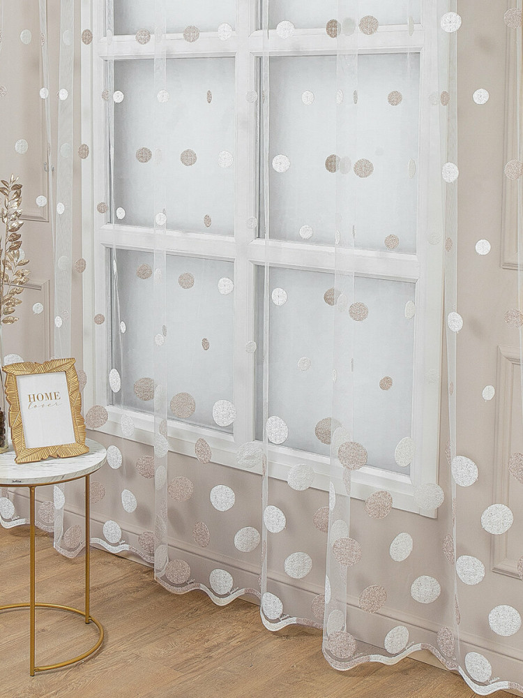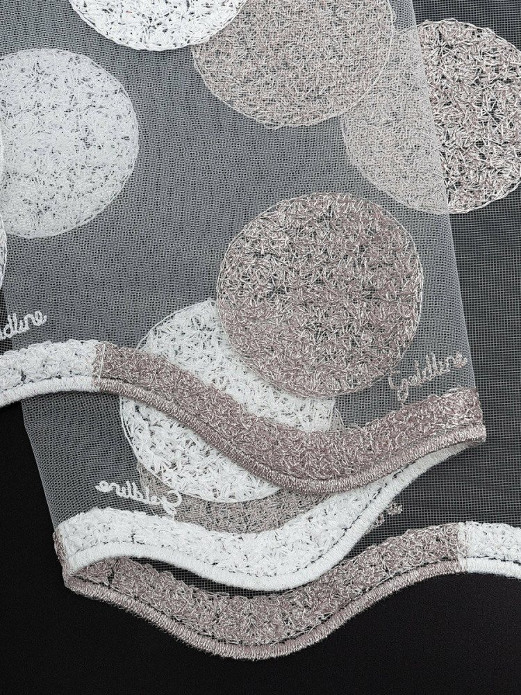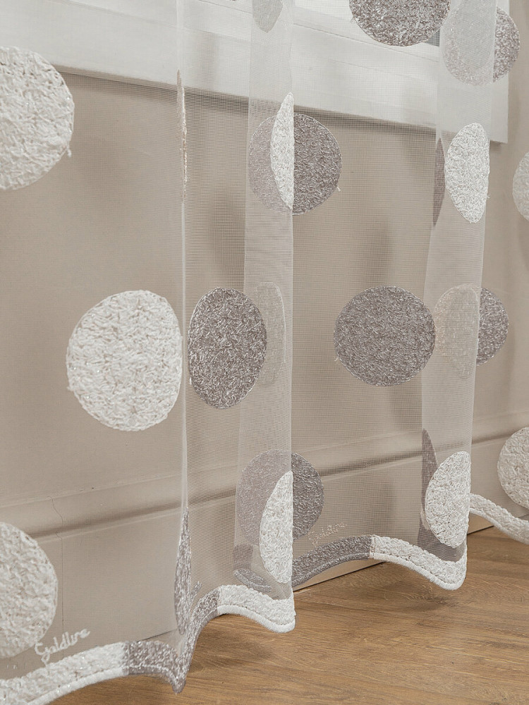 Мягкий, нежный тюль торговой марки «Amore Mio» прекрасно дополнит интерьер как гостиной, так и спальни, кухни или детской комнаты. Тюль производится в России из качественной турецкой ткани. Основа изделия — мелкая сетка с изящной современной вышивкой в виде кругов, низ изделия выполнен в виде волны и перекликается с основным узором, благодаря чему выглядит легким и воздушным. Рекомендации по уходу: машинная стирка на деликатном режиме при 30 градусах с использованием жидкого моющего средства без отбеливающих компонентов, отжим на деликатном режиме. Полотно на шторной ленте и готово к использованию.