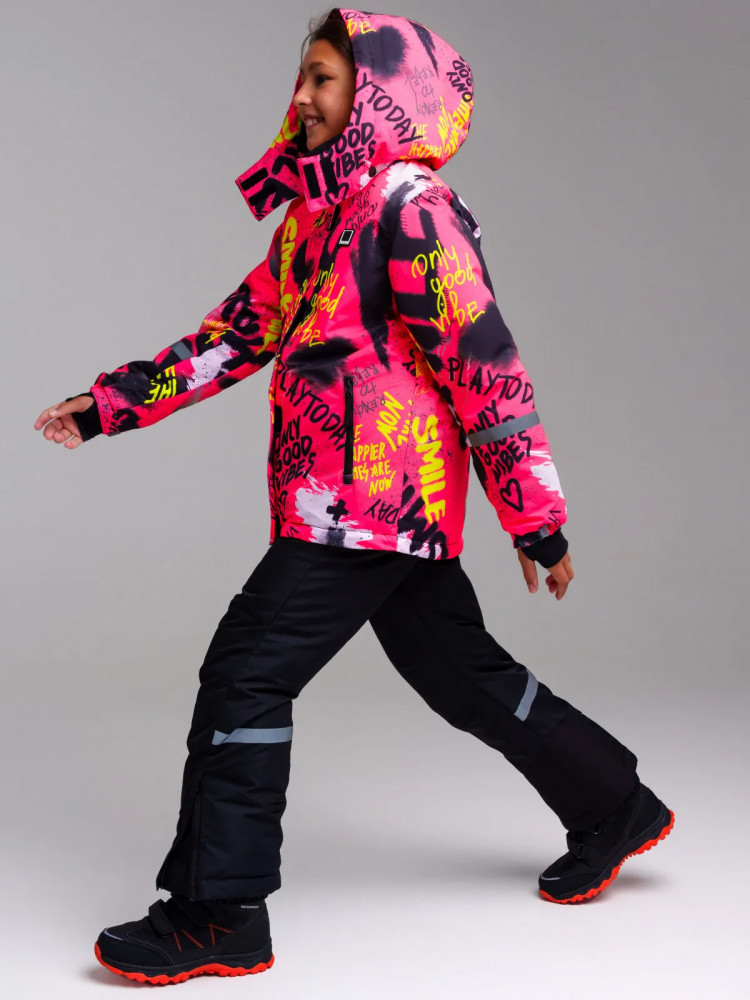Куртка зимняя из мембранной ткани 5000*5000. Линия Nord — высокая степень теплозащиты. Температурный режим до -25°С. Материал верха с ветрозащитным и водоотталкивающим покрытием. Внутренняя и внешняя ветрозащитные планки. Два боковых кармана на молнии. Внутренний карман. Потайной карман на молнии на левом рукаве. Подкладка — флис. Съемный капюшон с креплением на кнопках. Низ рукава на эластичном манжете с отверстием для большого пальца, регулировка ширины липучкой. Текстильный клапан для защиты подбородка при застегивании молнии. Светоотражающие элементы. Температурный режим является рекомендованным, необходимо учитывать уровень активности ребенка и многослойность поддевочной одежды (термобелье, флис).
