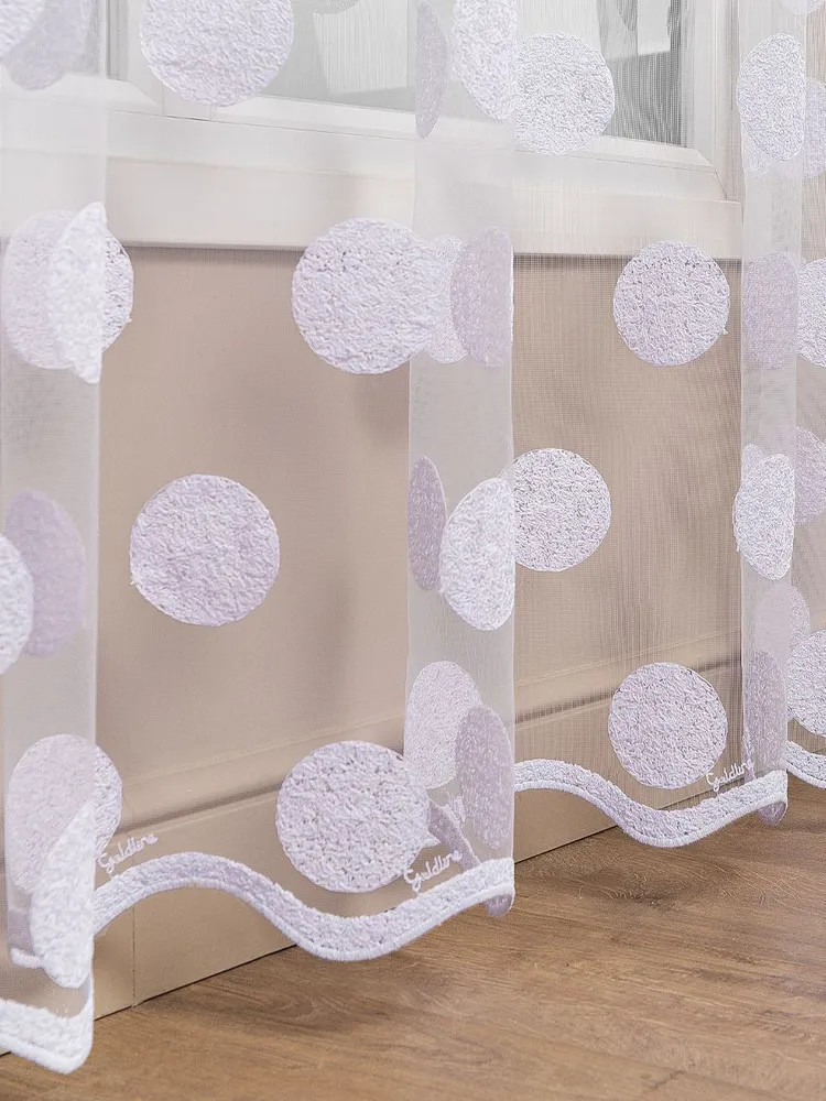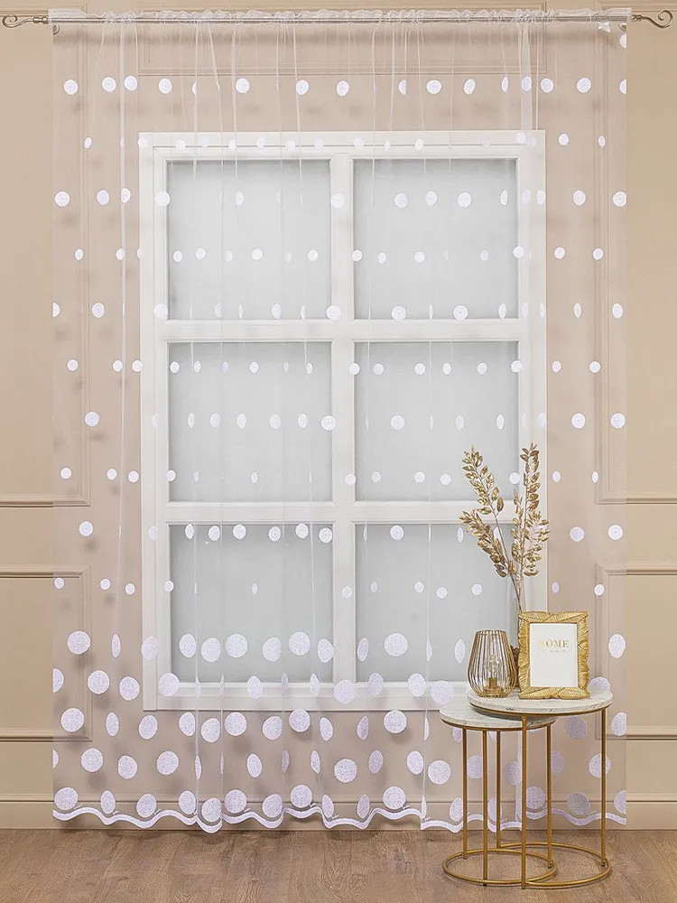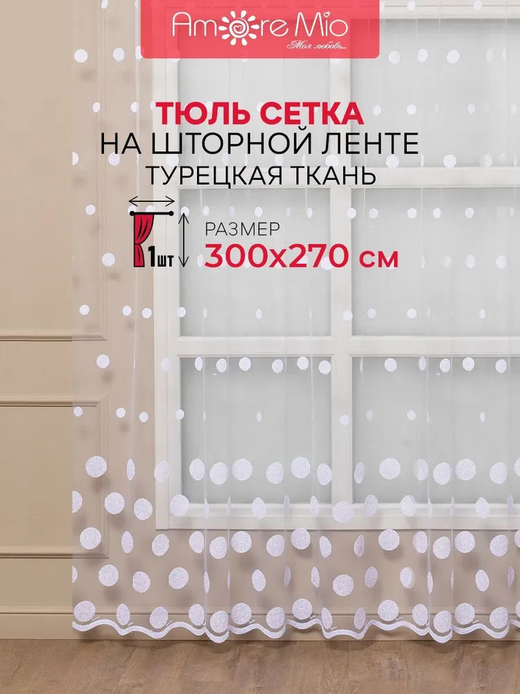 Мягкий, нежный тюль торговой марки «Amore Mio» прекрасно дополнит интерьер как гостиной, так и спальни, кухни или детской комнаты. Тюль производится в России из качественной турецкой ткани. Основа изделия — мелкая сетка с изящной современной вышивкой в виде кругов, низ изделия выполнен в виде волны и перекликается с основным узором, благодаря чему выглядит легким и воздушным. Рекомендации по уходу: машинная стирка на деликатном режиме при 30 градусах с использованием жидкого моющего средства без отбеливающих компонентов, отжим на деликатном режиме. Полотно на шторной ленте и готово к использованию.