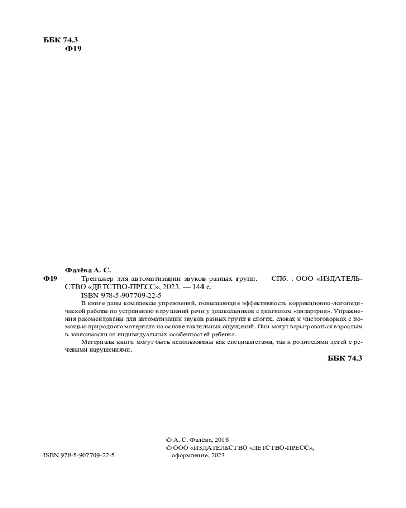 💳 Оплатить за товар можно при получении 🇰🇿 Есть бесплатная доставка по Казахстану от 1 дня 🎁 Копите бонусы с каждой покупки В книге даны комплексы упражнений, повышающие эффективность коррекционно-логопедической работы по устранению нарушений речи у дошкольников с диагнозом «дизартрия». Упражнения рекомендованы для автоматизации звуков разных групп в слогах, словах и чистоговорках с помощью природного материала на основе тактильных ощущений. Они могут варьироваться взрослым в зависимости от индивидуальных особенностей ребенка. Материалы книги могут быть использованы как специалистами, так и родителями детей с речевыми нарушениями. |