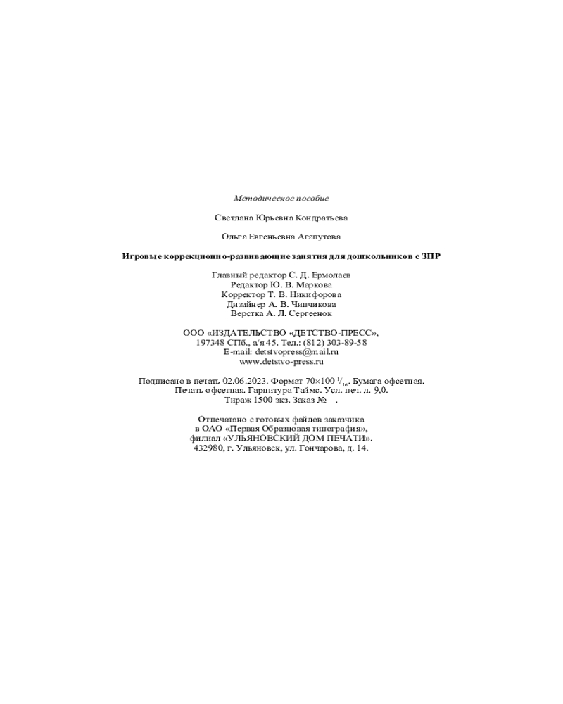 Игровые коррекционно-развивающие занятия для дошкольников с ЗПР. 4-7 летАгапутова Ольга Е., Светлана Юрьевна Кондратьева +32