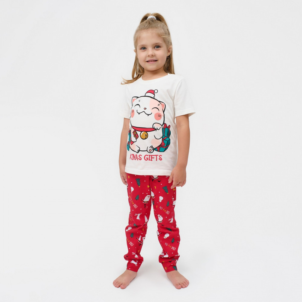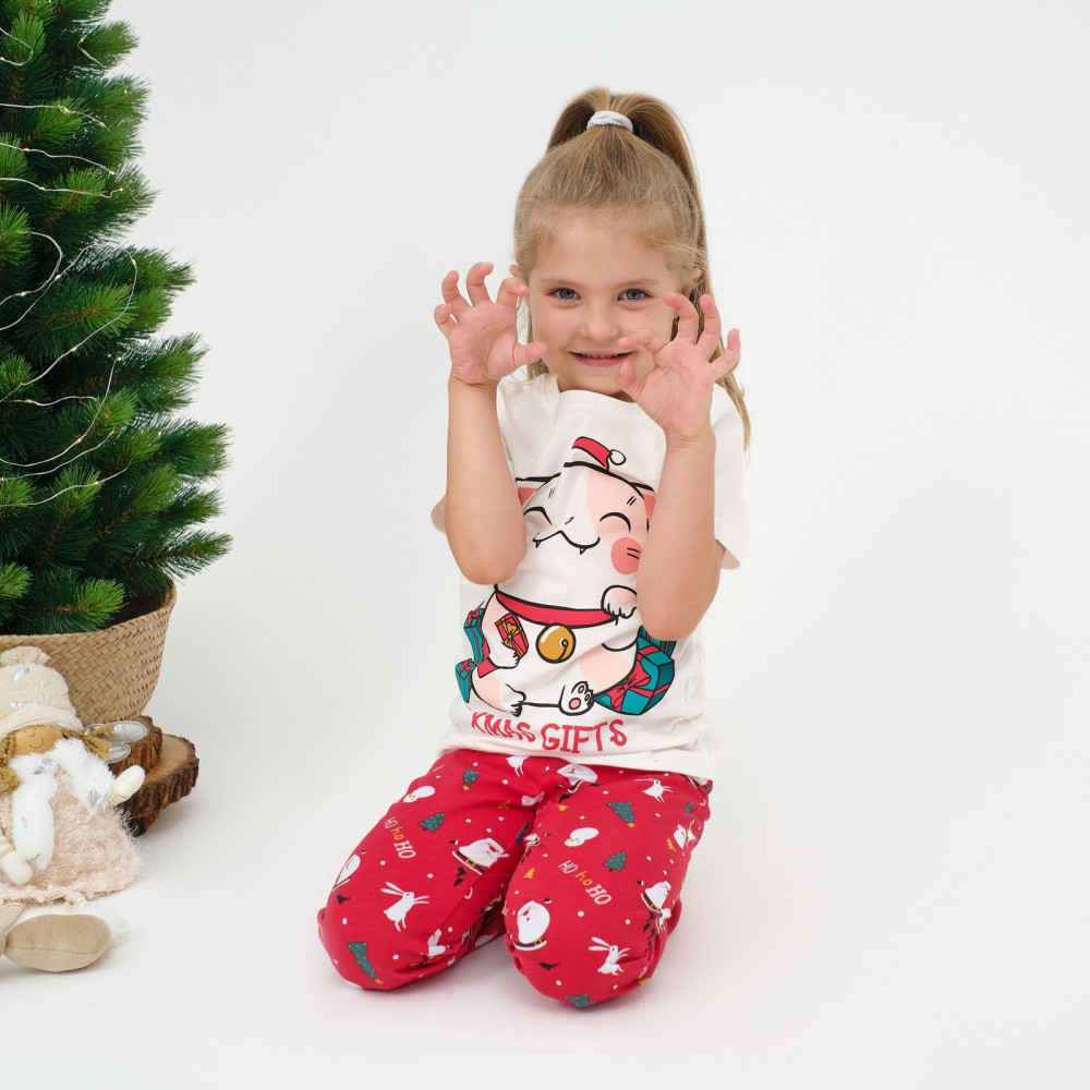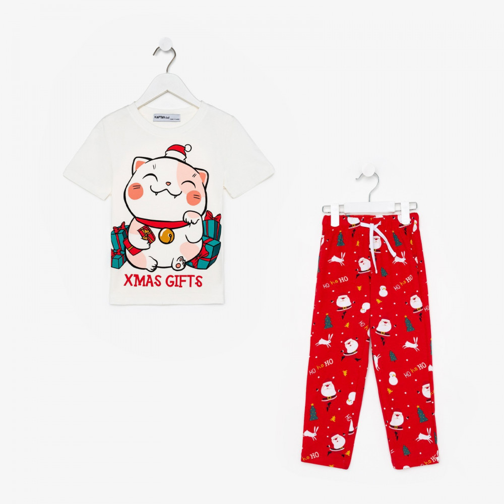 KAFTAN Пижама для девочек «Новогодний котик»