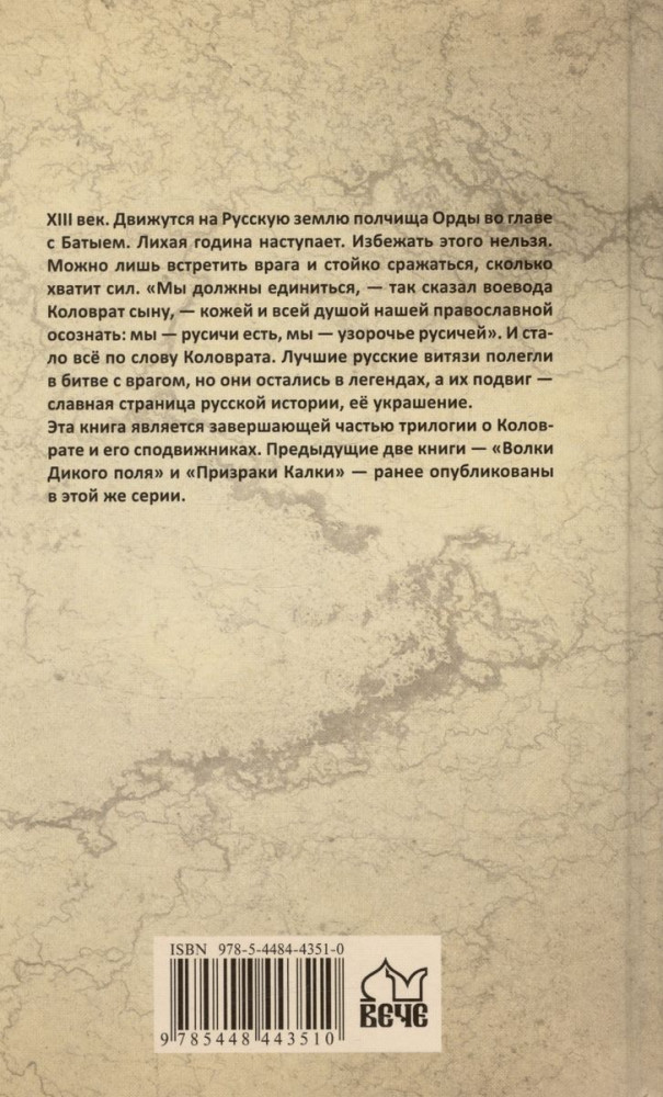Серия: У истоков Руси XIII век. Движутся на Русскую землю полчища Орды во главе с Батыем. Лихая година наступает. Избежать этого нельзя. Можно лишь встретить врага и стойко сражаться, сколько хватит сил. «Мы должны единиться, — так сказал воевода Коловрат сыну, — кожей и всей душой нашей православной осознать: мы — русичи есть, мы — Узорочье русичей». И стало всё по слову Коловрата. Лучшие русские витязи полегли в битве с врагом, но они остались в легендах, а их подвиг — славная страница русской истории, её украшение. |